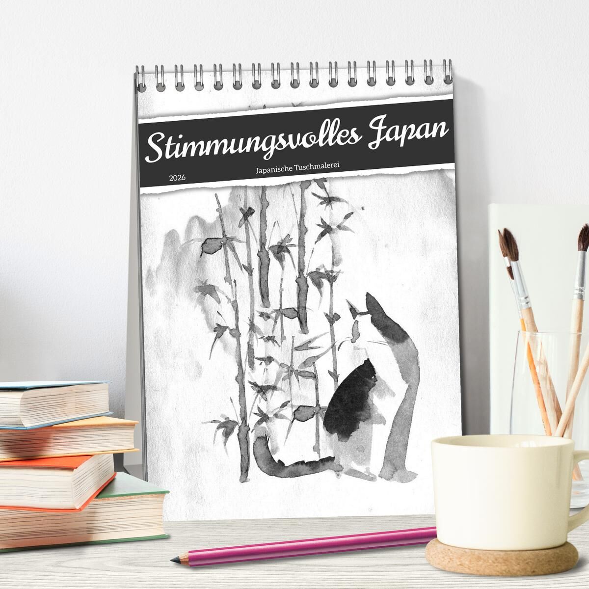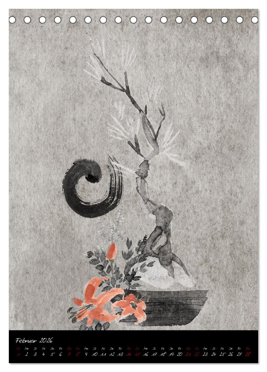 Ob Landschaft, Stillleben oder Tiere, die ausdrucksstarke Technik japanischer Tuschmalerei vermittelt uns Ruhe und Gelassenheit, eine meditative Stimmung, die uns über das Jahr begleitet.