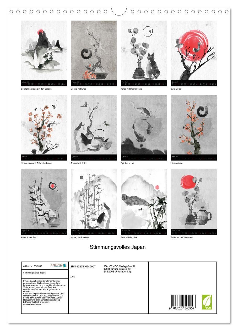 Ob Landschaft, Stillleben oder Tiere, die ausdrucksstarke Technik japanischer Tuschmalerei vermittelt uns Ruhe und Gelassenheit, eine meditative Stimmung, die uns über das Jahr begleitet.