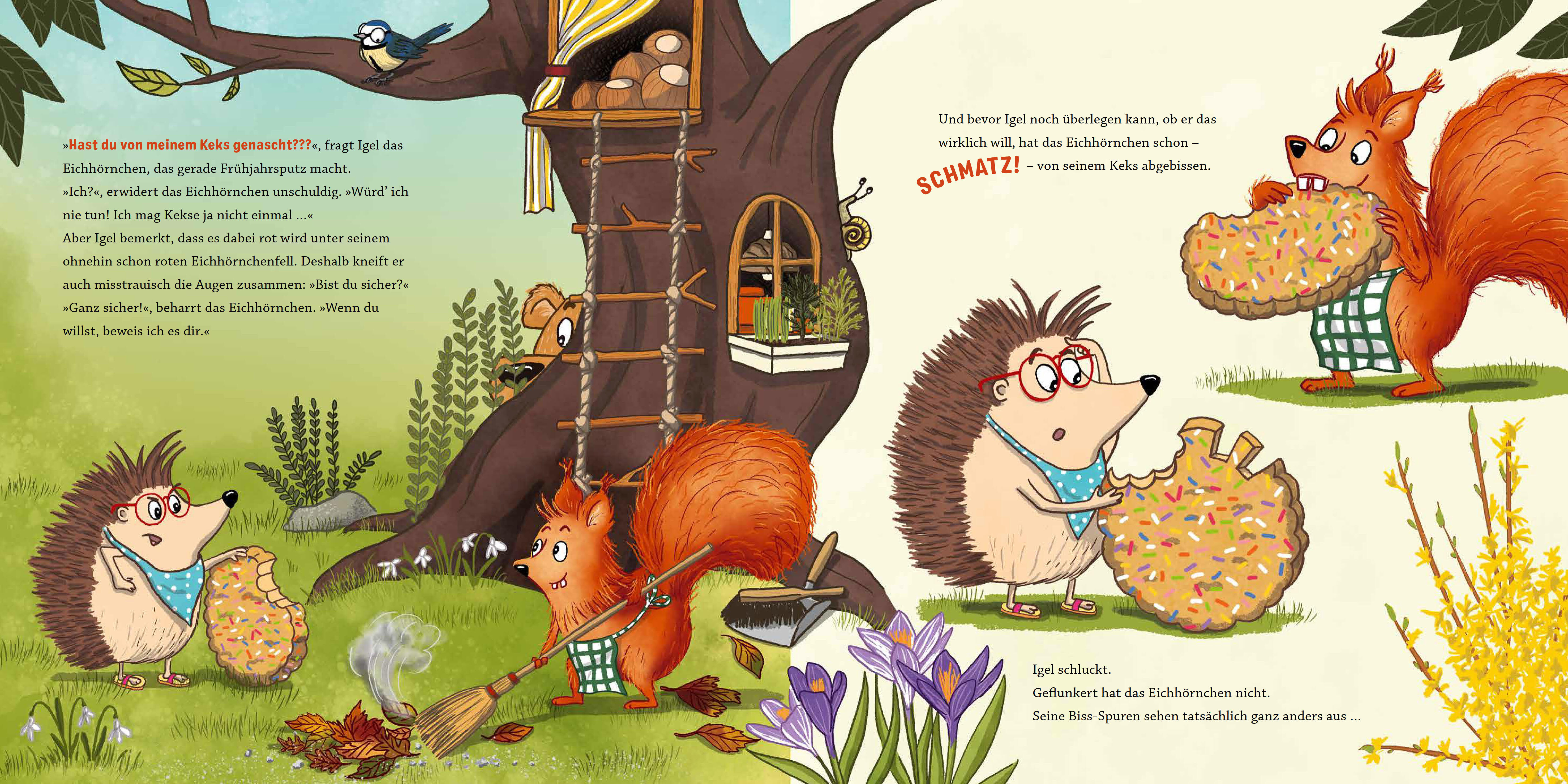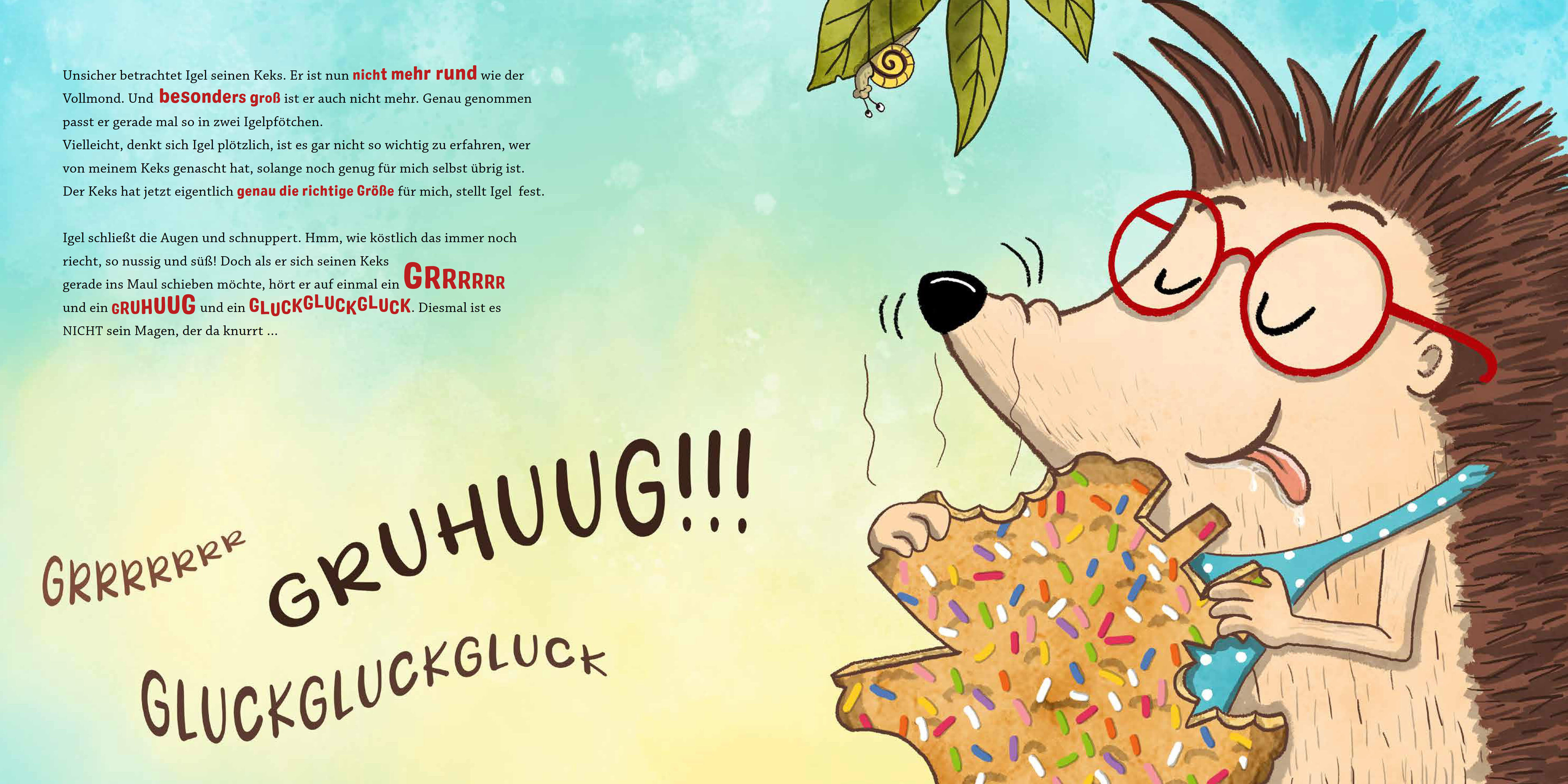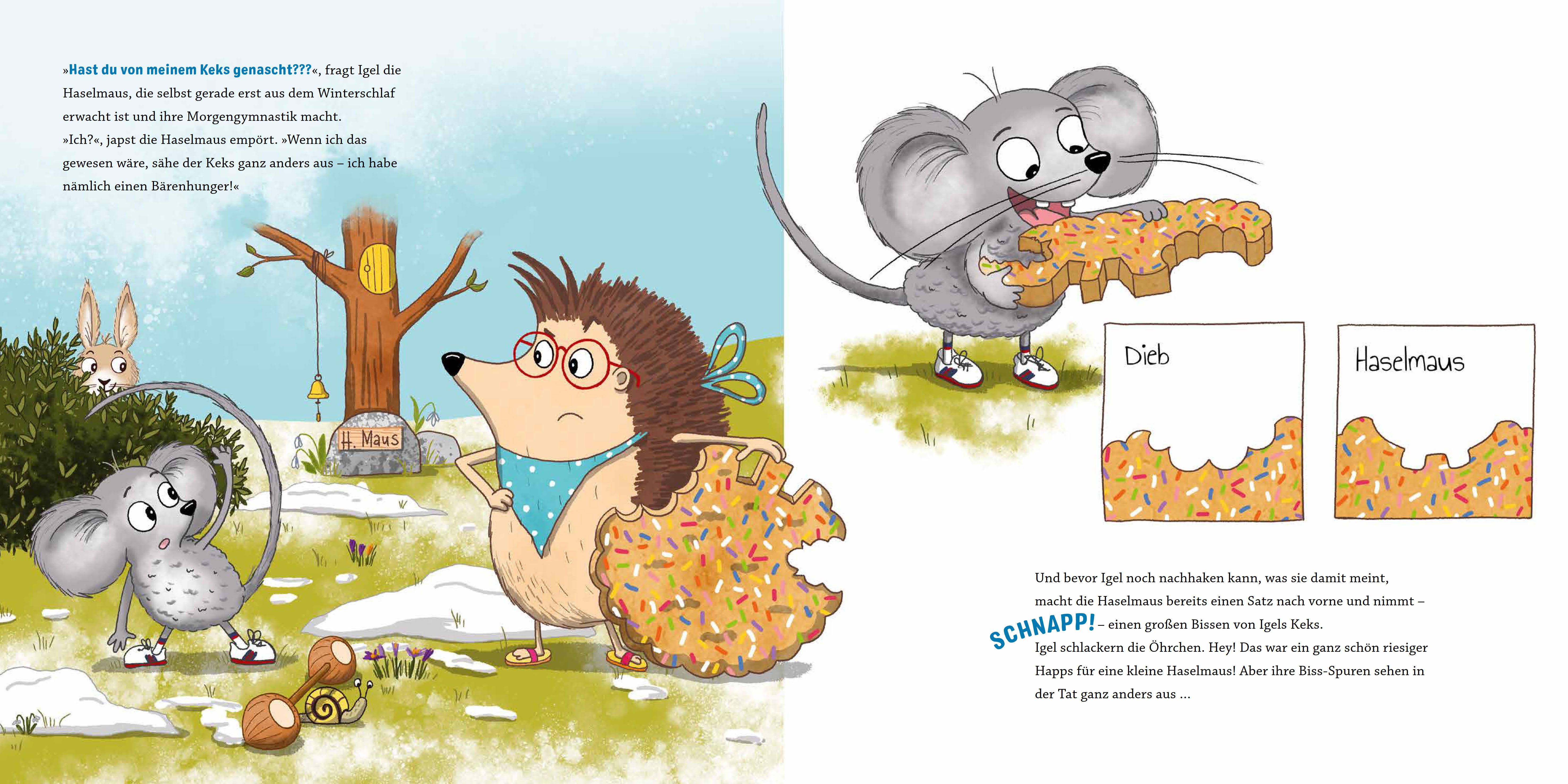 Igel traut seinen Augen kaum: Da liegt der leckerste Keks der Welt, direkt vor seiner Haustür. Heute muss sein Glückstag sein! Doch als er kurz in seinem Bau verschwindet, nascht doch tatsächlich jemand von seiner Leckerei - unerhört! Die Bissspuren sind deut...