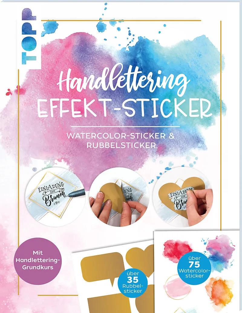 Dieses wundervolle Stickerbuch muss einfach jeder Handlettering-Fan haben! Es enthält über 75 beschreibbare Sticker in angesagter Watercolor-Optik für schnelle und einfache Watercolor-Effekte. Außerdem über 35 Rubbelsticker in Gold, Silber und Roségold für ind...
