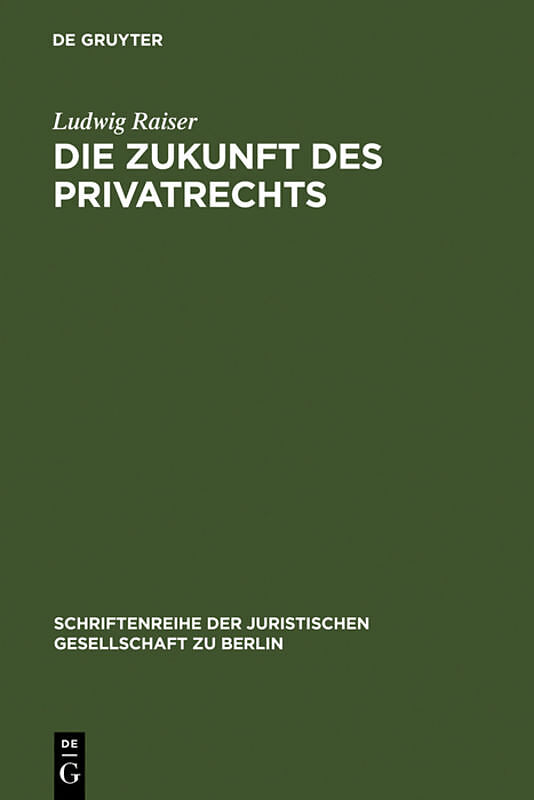 Keine ausführliche Beschreibung für "Die Zukunft des Privatrechts" verfügbar. Gegründet im Jahr 1859, zählt die Juristische Gesellschaft zu Berlin zu den ältesten ihrer Art in Europa und blickt auf eine lange Tradition zurück. In der Schriftenreihe d...