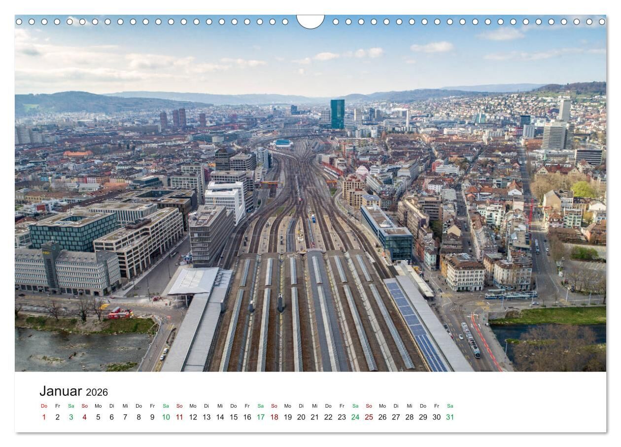 Luftbildkalender Zürich (Wandkalender 2026 DIN A3 quer), CALVENDO Monatskalender