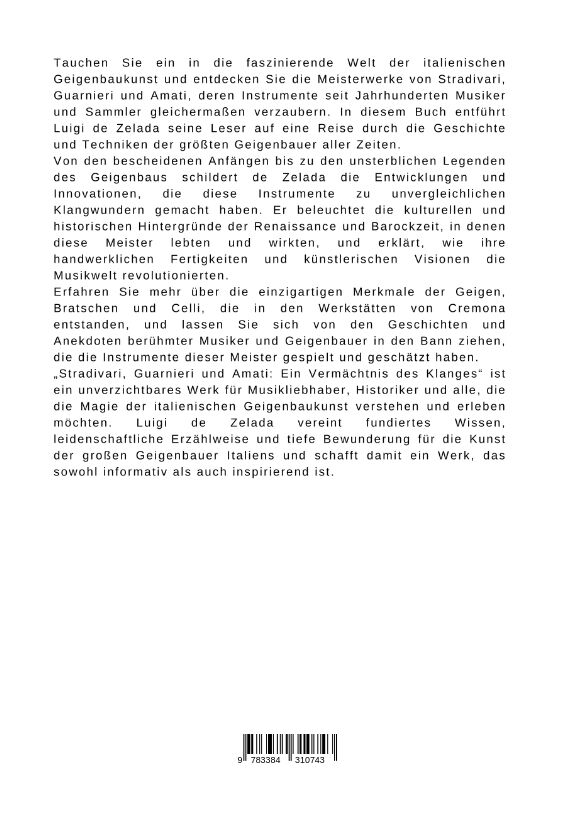 Tauchen Sie ein in die faszinierende Welt der italienischen Geigenbaukunst und entdecken Sie die Meisterwerke von Stradivari, Guarnieri und Amati, deren Instrumente seit Jahrhunderten Musiker und Sammler gleichermaßen verzaubern. In diesem Buch entführt Luigi ...