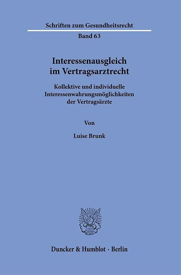 Die Arbeit widmet sich der Position der Vertragsärzte und untersucht aus ihrer Perspektive, inwiefern die Konzeption des Vertragsarztrechts effektive kollektive und individuelle Möglichkeiten zur Interessenwahrung bereithält. Anlässlich der Grundsatzentscheidu...