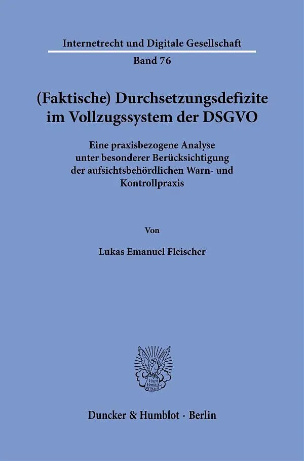 Diese Arbeit beschäftigt sich mit der Vollzugssystematik des Datenschutzrechts unter der Datenschutz-Grundverordnung und untersucht, ob das europäische Datenschutzrecht insbesondere in Bezug auf die Tätigkeitspraxis der deutschen Aufsichtsbehörden an einem (pr...