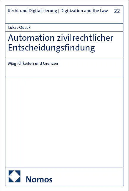 Das Werk erörtert die Frage, wie sich zivilrechtliche Entscheidungen mit Hilfe von Künstlicher Intelligenz automatisieren lassen. Es kann als Richtschnur dienen, welche Möglichkeiten und Hürden bei der technischen Umsetzung bestehen. Ausgehend vom methodischen...