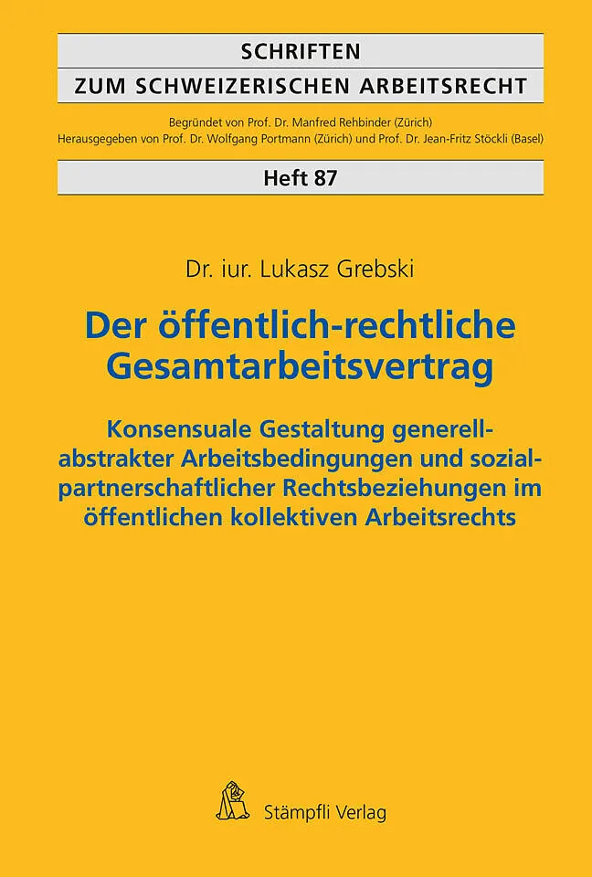 Das vorliegende Werk befasst sich mit den rechtlichen Aspekten des öffentlich-rechtlichen Gesamtarbeitsvertrags, folglich mit der konsensualen Gestaltung generell-abstrakter Arbeitsbedingungen und sozialpartnerschaftlicher Rechtsbeziehungen im öffentlichen kol...