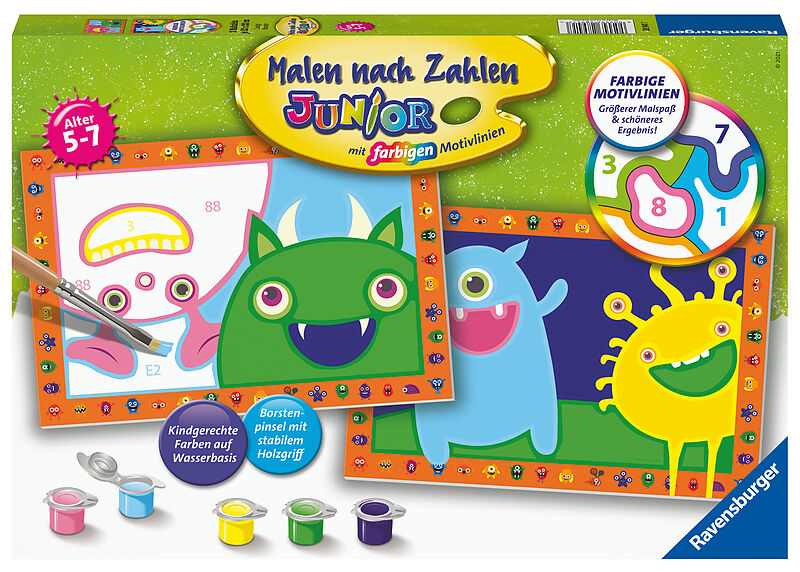Farbige Motivlinien: Mehr Malspaß und ein schöneres Ergebnis! Dank der farbigen Motivlinien, die die Malbereiche umreißen, erkennen Kinder schneller das gesamte Motiv und die Farben. Das farbenfrohe Motiv Lustige Monster ist eine tolle Geschenkidee für Kinder ...
