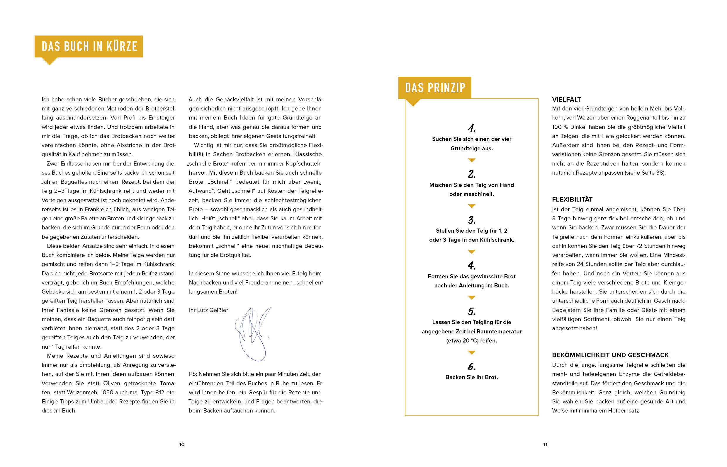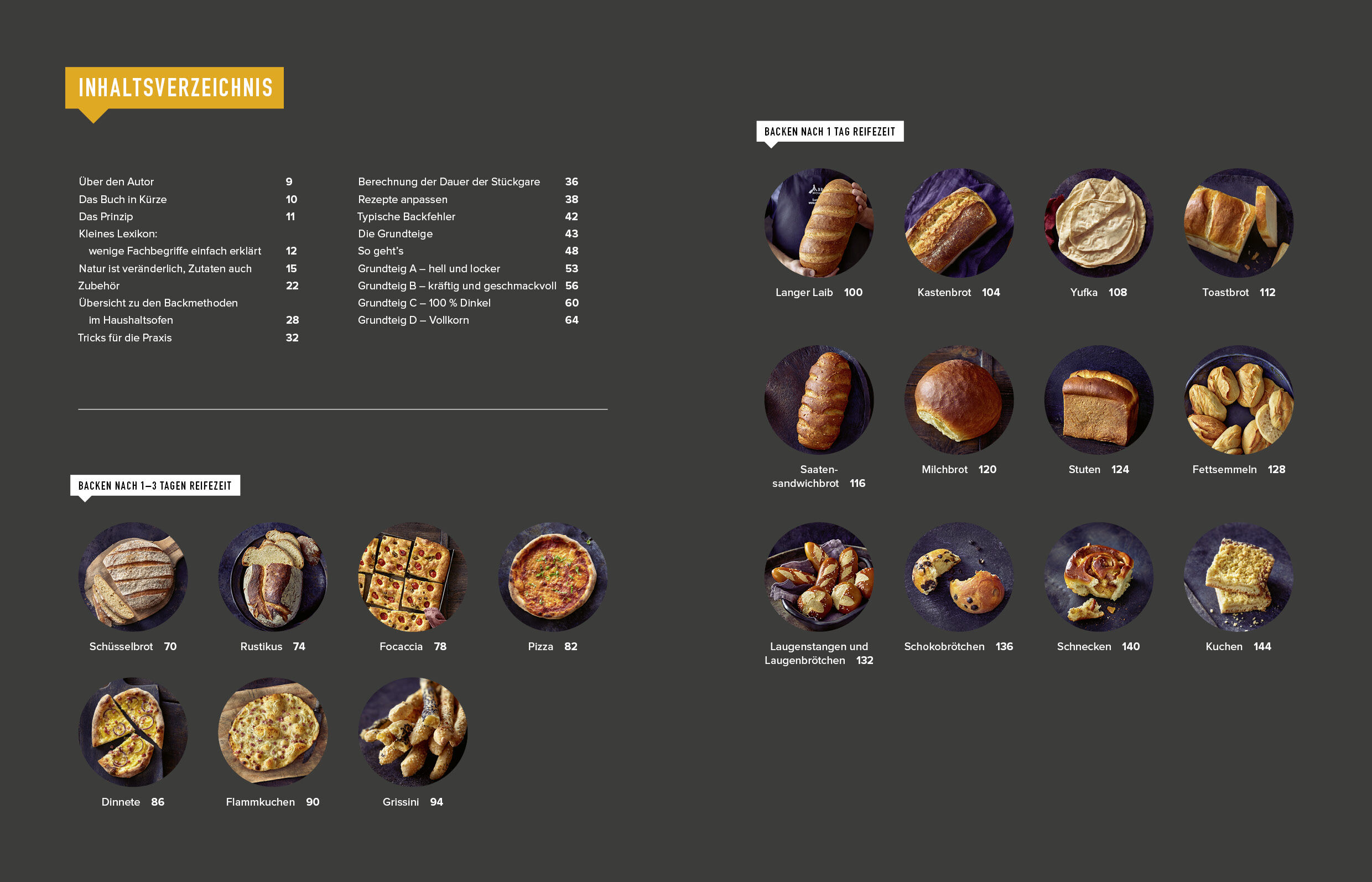 Die Zubereitung der fein austarierten Rezepte ist simpel: Sie wählen die Mehlsorte(n), mischen die Zutaten von Hand grob zu einem Hefeteig und stellen ihn in den Kühlschrank. Innerhalb der nächsten 24 bis 72 Stunden kann der Teig , wenn gerade Zeit ist, aus dem Kühlschrank genommen, geformt und gebacken werden. Dabei hat man die Wahl aus sage und schreibe 50 köstlichen und ganz verschiedenen Brotsorten . Die Entscheidung , welches Brot es werden soll, kann sogar erst kurz vor dem Backen getroffen werden. Ob schlichtes Weißbrot, französisches Baguette, Vollkornbrot, Flammkuchen, Pizza oder Toastbrot, ob Brötchen, Olivenbrot, Ciabatta oder Stockbrot: Die Vielfalt ist grenzenlos.