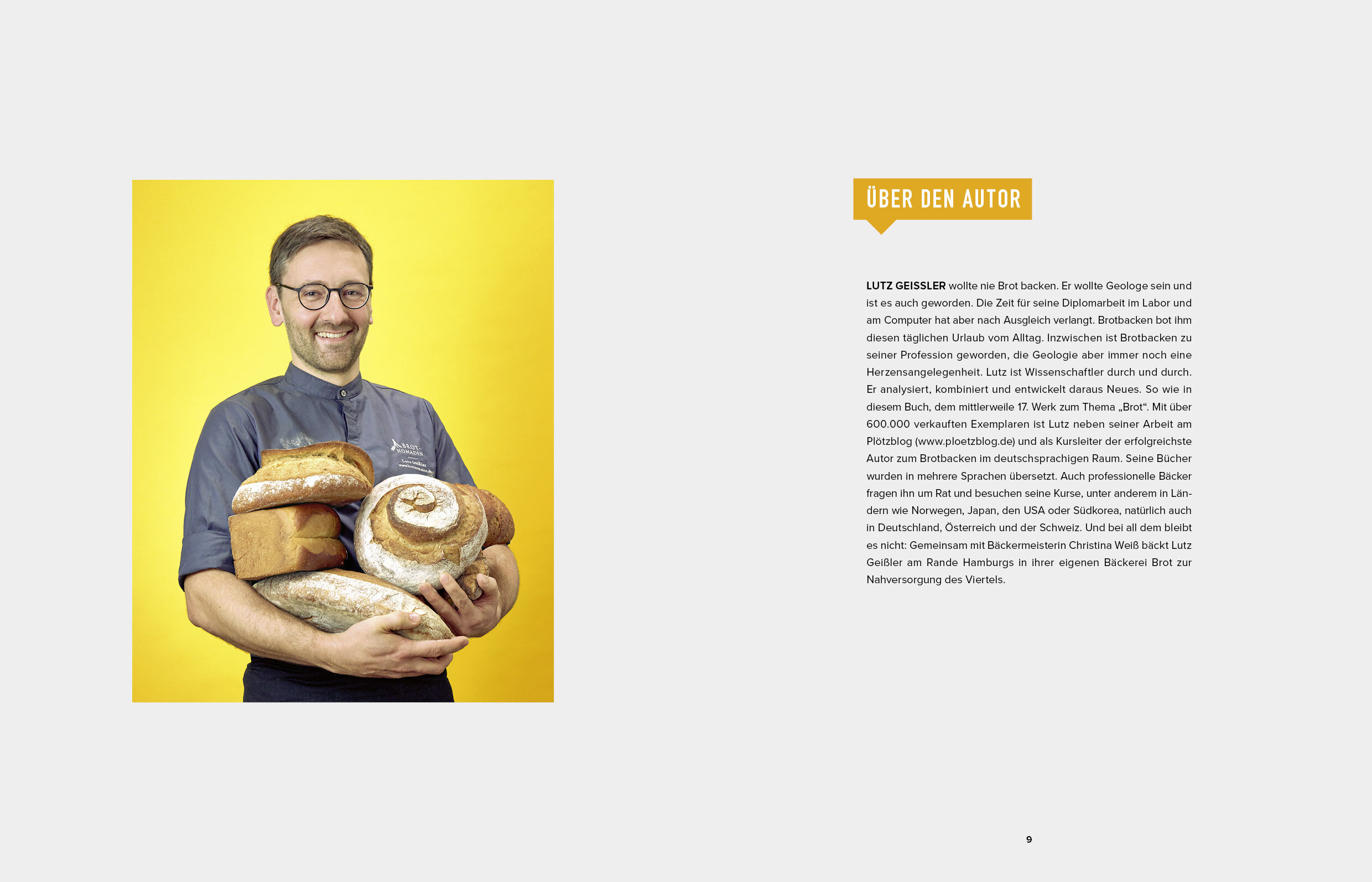 Gutes Brot ist die Leidenschaft von Lutz Geißler. Ursprünglich Geologe, entwickelt er als Selbstständiger in jeder freien Minute Rezepte für das Gastronomie- und Bäckerhandwerk, schreibt Backbücher, gibt Brotbackkurse und hofft auf eine Rückkehr des traditionellen Bäckerhandwerks. Lutz Geißler begann 2008 mit dem Brotbacken, eher aus einer Laune heraus, um den Kopf zu lüften. In wenigen Jahren vertiefte er sich so sehr in die Materie, dass das Brotbacken inzwischen vom Hobby zu Beruf und Berufung zugleich geworden ist. Seit 2009 veröffentlicht Lutz Geißler seine Rezepte und Backergebnisse sowie Tipps und Reportagen auf seinem Blog www.ploetzblog.de.