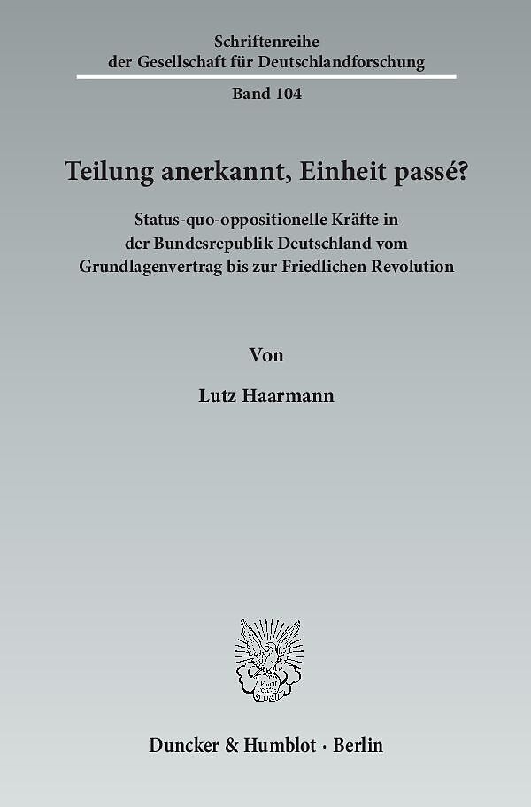 Teilung anerkannt, Einheit passé? Diese Frage haben sich die in dieser Studie untersuchten status-quo-oppositionellen Gruppen und Persönlichkeiten in der Deutschlandpolitik während der 1970er und 1980er Jahre in der Bundesrepublik gestellt. Sie haben versucht,...