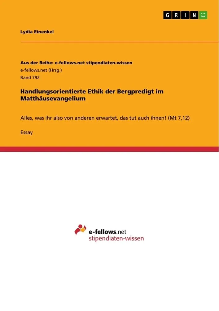 Essay aus dem Jahr 2008 im Fachbereich Theologie - Biblische Theologie, Note: 1,0, Universität Bayreuth (Theologische Fakultät), Veranstaltung: Theologie des Neuen Testaments, Sprache: Deutsch, Abstract: Die Bergpredigt gibt als einer der bekanntesten neutesta...