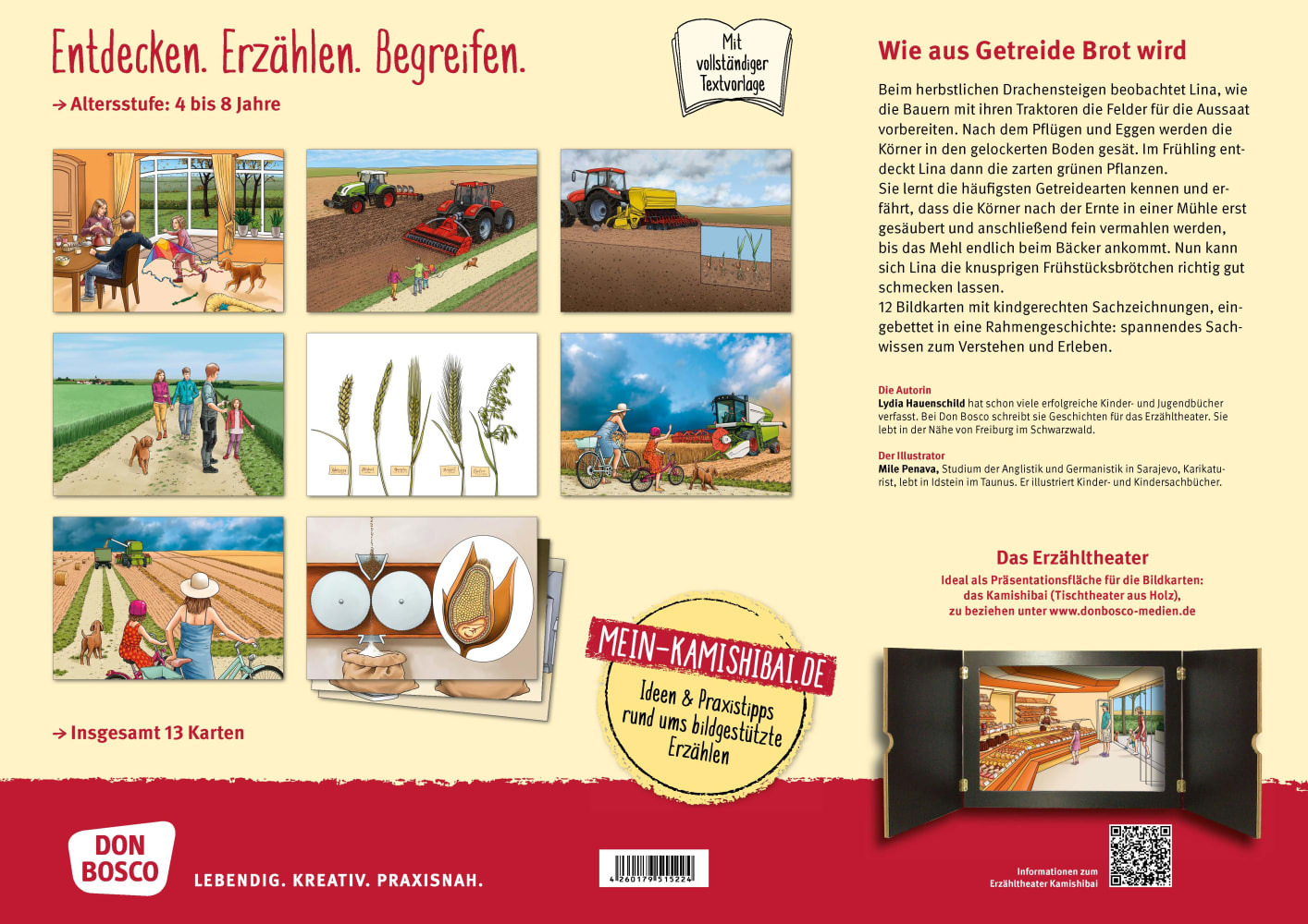 Von der Aussaat über die Ernte und den Mahlvorgang bis zum Backen des Brotes erklärt das Bildkartenset, wie aus Körnern Brot wird. Wie aus Getreide Brot wird: Sachwissen mit dem Kamishibai Was passiert vom Saatkorn bis zum fertigen Laib Brot? Dieses Kamishibai...Von der Aussaat über die Ernte und den Mahlvorgang bis zum Backen des Brotes erklärt das Bildkartenset, wie aus Körnern Brot wird.