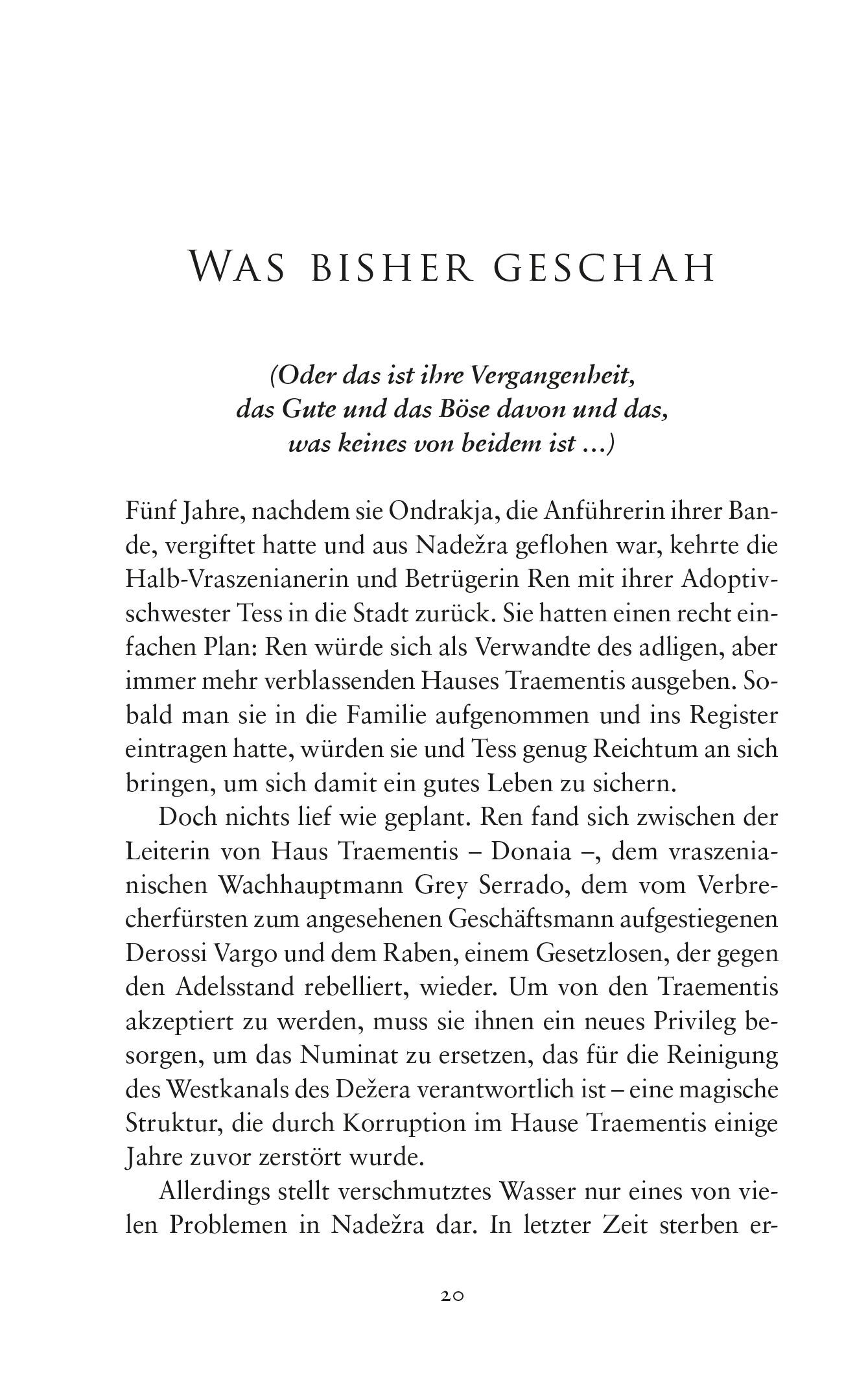 In Nadera ist der Frieden so zerbrechlich wie ein Faden. Eines der skrupellosesten Häuser der Stadt wurde zerstört, doch die Dunkelheit wabert noch immer durch die schmutzigen Gassen und prächtigen Gärten der Stadt. In diesem Netz aus Lügen kann sich Ren nur a...