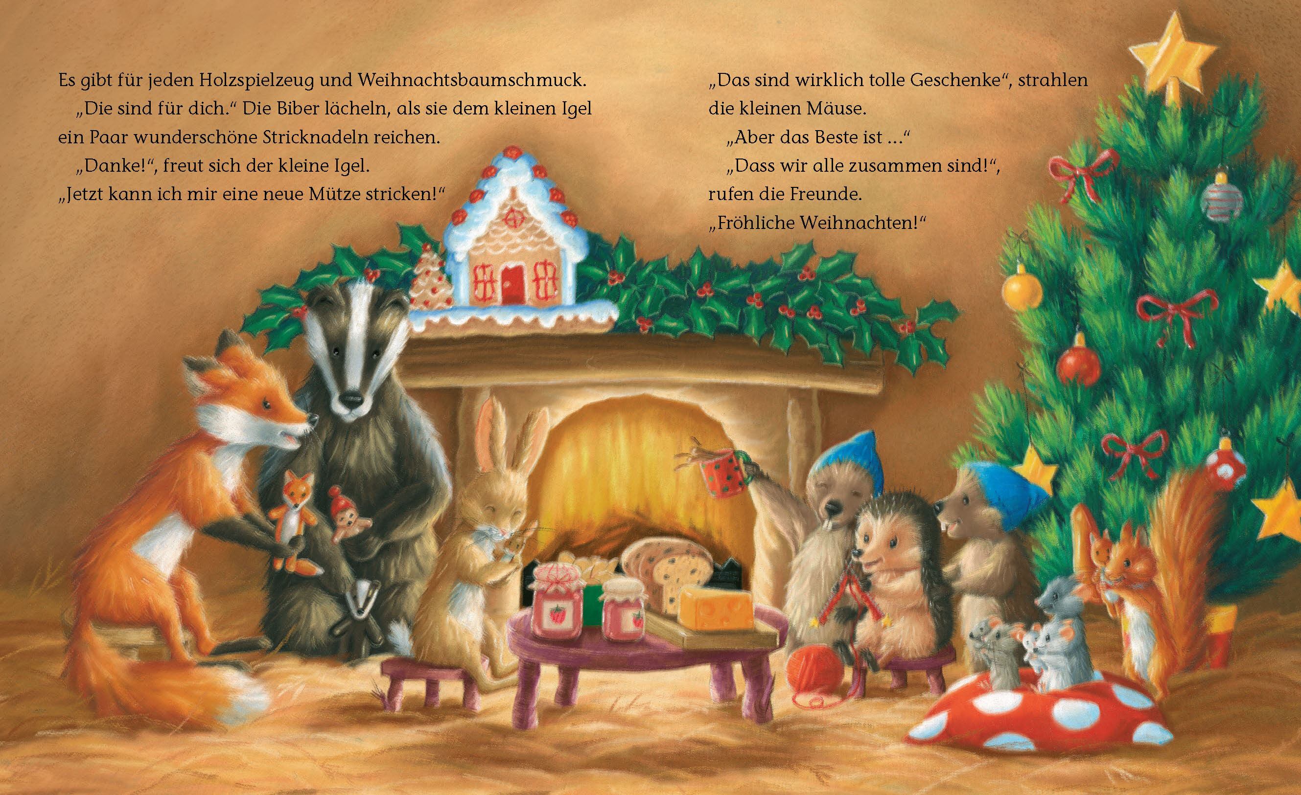 Schon seit Tagen tobt ein schwerer Schneesturm. Der kleine Igel sitzt in seinem Bau fest und bald ist Weihnachten. Das Fest möchte er eigentlich wie immer mit seinen Freunden feiern. Aber ob das in diesem Jahr klappen wird? Gerade noch rechtzeitig bessert sich...