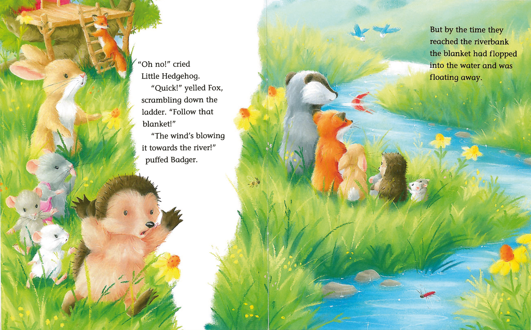 Endlich ist es so weit: Der kleine Igel lädt seine Freunde zum Übernachten in sein neues Baumhaus ein. Und damit sie nicht frieren, hat er eine wunderschöne große Kuscheldecke gemacht, unter der sie alle Platz finden. Doch dann kommt eine Windböe, pa Endlich i...