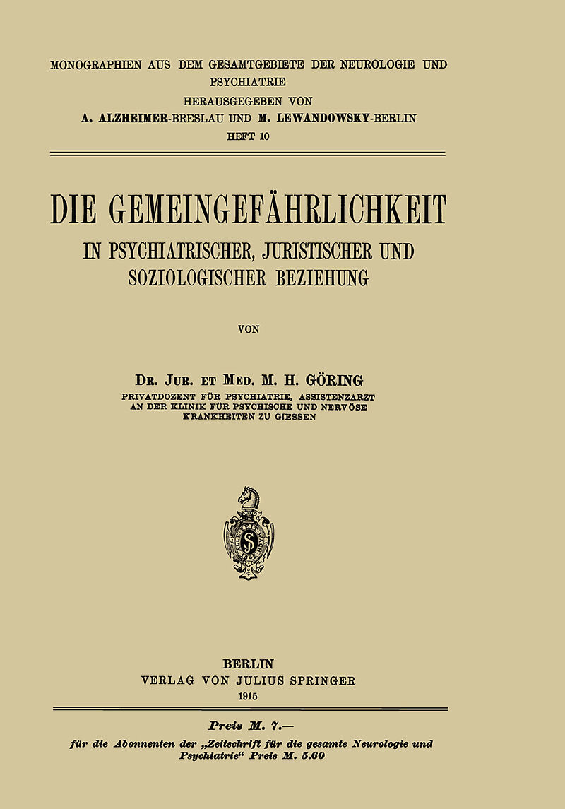 I. Abschnitt: Die zurzeit geltenden und in Entwürfen vorgeschlagenen Bestimmungen, sowie eine Anzahl veröffentlichter Erklärungen über die Gemeingefährlichkeit.- 1. Kapitel: Welche Voraussetzungen müssen gegeben sein?.- 2. Kapitel: Welche Handlungen müssen befürchtet werden?.- II. Abschnitt: Besprechung der Gemeingefährlichen an Hand von Krankengeschichten und Strafanstaltsakten.- 1. Kapitel: Gemeingefährlichkeit infolge von Sinnestäuschungen.- 2. Kapitel: Gemeingefährlichkeit infolge von Wahnideen.- 3. Kapitel: Gemeingefährlichkeit infolge von Dämmerzuständen und plötzlich auftretenden Erregungszuständen.- 4. Kapitel: Gemeingefährlichkeit infolge von Schwachsinn.- 5. Kapitel: Gemeingefährlichkeit infolge von verbrecherischer Neigung.- III. Abschnitt: Die Einteilung der Gemeingefährlichkeit.- 1. Kapitel: Bei welchen Handlungen kann man den Täter als gemeingefährlich bezeichnen?.- 2. Kapitel: Die Beurteilung der Zukunft aus Gesinnung und Krankheitserscheinungen.- 3. Kapitel: Die Beeinflußbarkeit der Gemeingefährlichkeit und das Auftreten partieller Gemeingefährlichkeit.- Zusammenfassung.- IV. Abschnitt: Die Behandlung und Bekämpfung der Gemeingefährlichkeit.- Allgemeines.- 1. Kapitel: Die Internierung.- 2. Kapitel: Die Entmündigung und Beaufsichtigung.- 3. Kapitel: Andere Mittel zur Behandlung und Bekämpfung der Gemeingefährlichen.- Zusammenfassung.