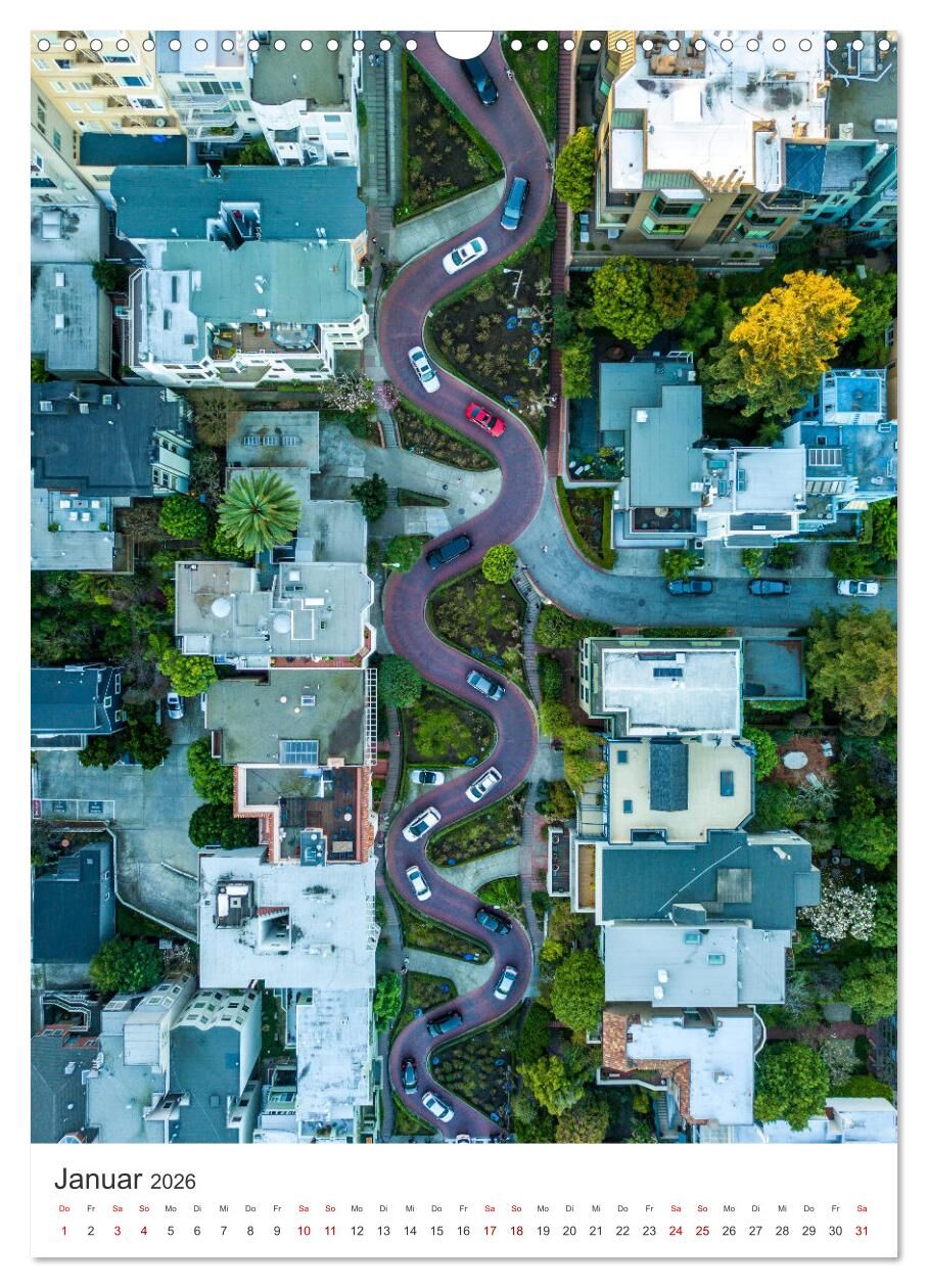 San Francisco - Cable Cars, Golden Gate Bridge und Lombard Street (Wandkalender 2026 DIN A3 hoch), CALVENDO Monatskalender