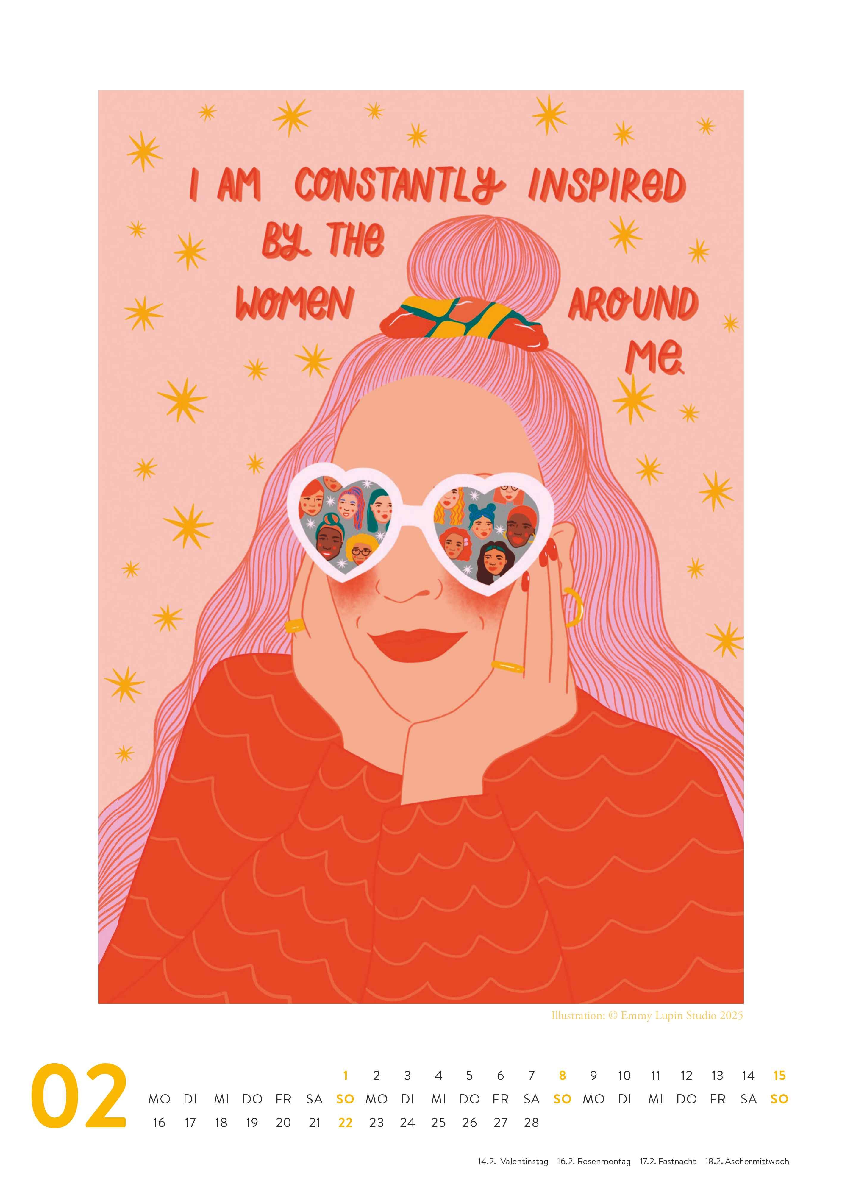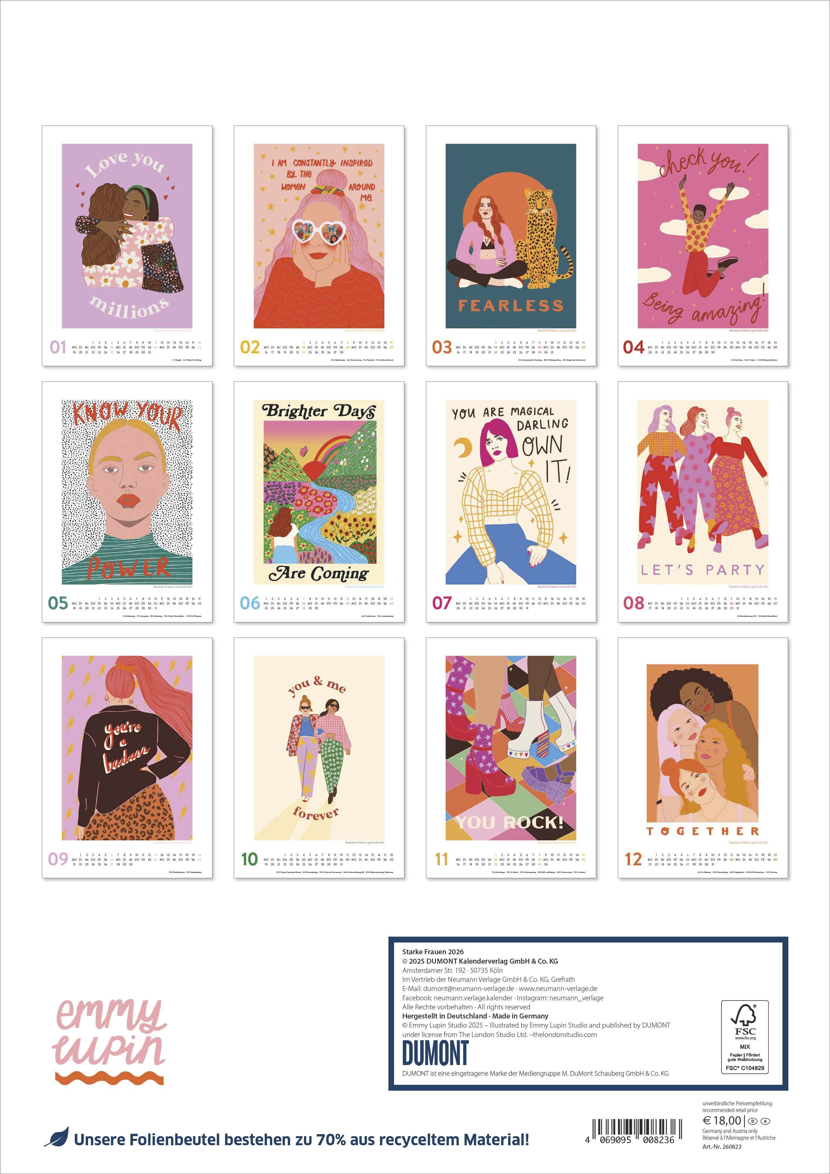 Ein Jahr voller Inspiration: Der DUMONT Wandkalender Starke Frauen 2026 zeigt moderne Illustrationen der Künstlerin Emmy Lupin, die Frauen in mutigen, freundschaftlichen und alltäglichen Szenen inszeniert farbenfroh, stark und voller Ausdruckskraft. Highlight...