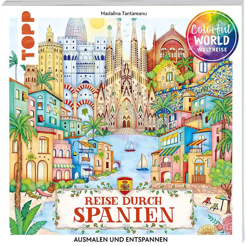 Mit dem vierten Band der mit Spiegel-Bestseller ausgezeichneten Ausmalbuch-Reihe Colorful World Weltreise kannst du nach Spanien reisen, ohne dein Zuhause zu verlassen. Die beliebte Illustratorin und Künstlerin Madalina Tantareanu hat für dich über 40 exklusive Ausmalmotive gezeichnet, die dich auf eine farbenfrohe Reise durch das sonnige Land am Mittelmeer entführen. Beginne dein Abenteuer mit einem kurzen Grundlagenteil , der dich in die Geheimnisse der Farbenlehre einführt. Vom sanften Grün der andalusischen Olivenhaine bis zum beruhigenden Blau der Wellen an Spaniens Küsten finde für jedes Motiv die perfekte Farbkombination . Den stimmungsvollen Ausmalmotiven gegenübergestellt findest du spannende Hintergrundinformationen , die dich noch weiter in die Szenen hineinziehen.