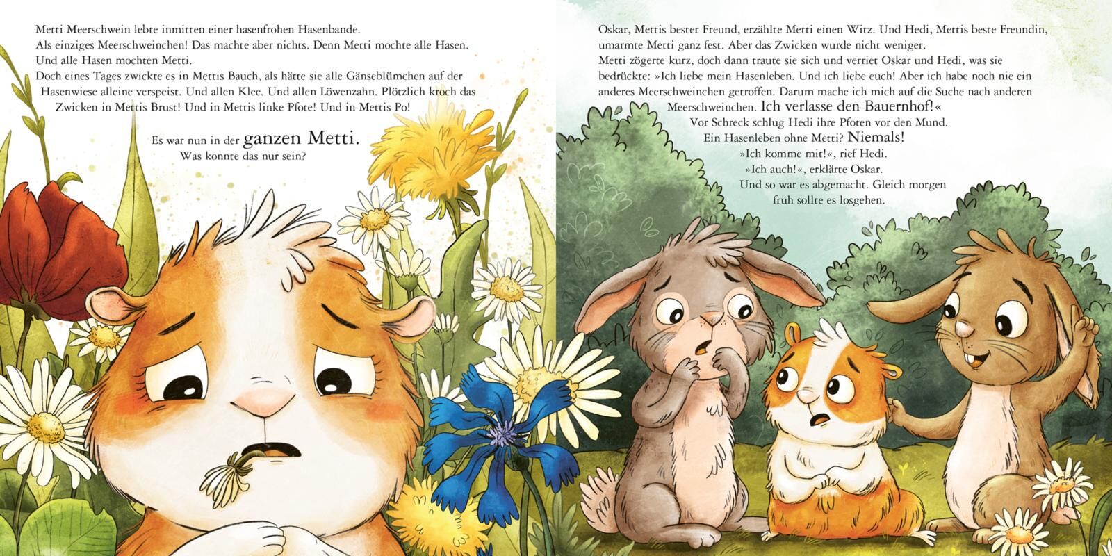 Metti Meerschwein lebt hasenvergnügt auf ihrem Bauernhof. Doch eines Tages zwickt es in Mettis Bauch. Das sind die Neugier und die Sehnsucht. Metti will sich auf den Weg machen und andere Meerschweinchen finden! Ihre besten Freunde Hedi und Oskar begleiten si...