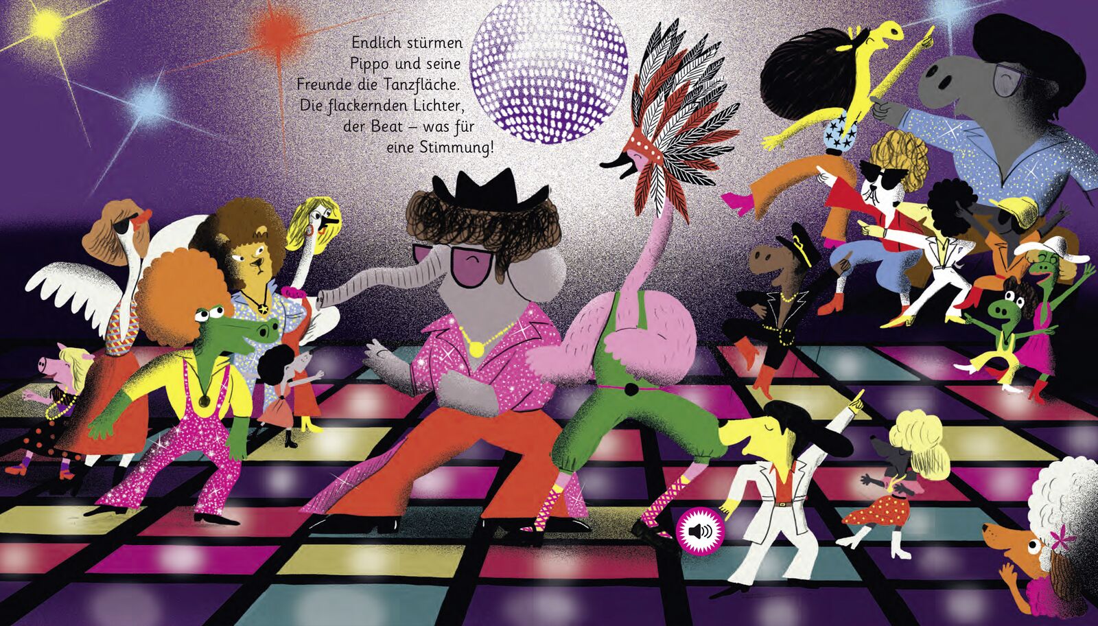 Diese klingende Bilderbuchgeschichte entführt Kinder ab 3 Jahren in die bunte Welt der Discomusik! Schon als der kleine Hund Pippo morgens die Augen aufschlägt, klingt Musik in seinen Ohren. Voller Vorfreude springt er aus dem Bett, denn heute Abend geht es a...