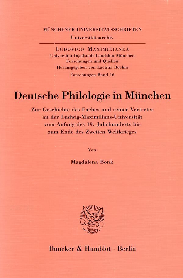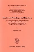Ziel der Arbeit ist es, die Geschichte der Deutschen Philologie in München umfassend in ihrer institutionellen Entwicklung und ihrem thematischen und methodischen Spektrum zu rekonstruieren, wie es sich in Forschung und Lehre ihrer Vertreter zwischen 1800 und ...