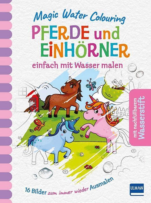 Beim Malen mit Wasser über die magischen Seiten erscheinen die Motive in bunten Farben Nach dem Trocknen können die Bilder immer und immer wieder gemalt werden Zusätzlich mit 18 Motiven zum Ausmalen und Platz zum Zeichnen eigener Motive Der neue Kreativ-Trend ...