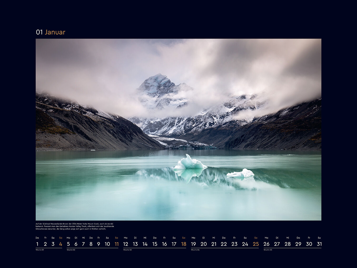Mit zwölf herausragenden Fotografien schmückt dieser opulente, großformatige KUNTH Wandkalender Magie der Berge für 2026 in edlem Design jedes Zimmer egal ob im Büro, im Home Office oder in Wohnräumen. Majestätisch recken sich ihre Gipfel in den Himmel Berge ...