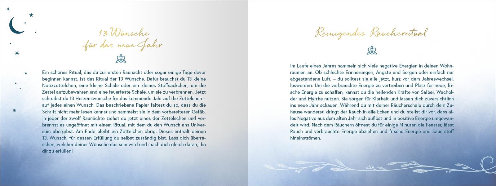 Entdecke den Zauber der zwölf geheimnisvollsten Nächte des Jahres Die Zeit rund um das Jahresende nutzten schon die Kelten, um mit Altem abzuschließen und den Weg für Neues zu bereiten. Sie zelebrierten die zwölf Nächte zwischen Sonnen- und Mondkalender, die ...