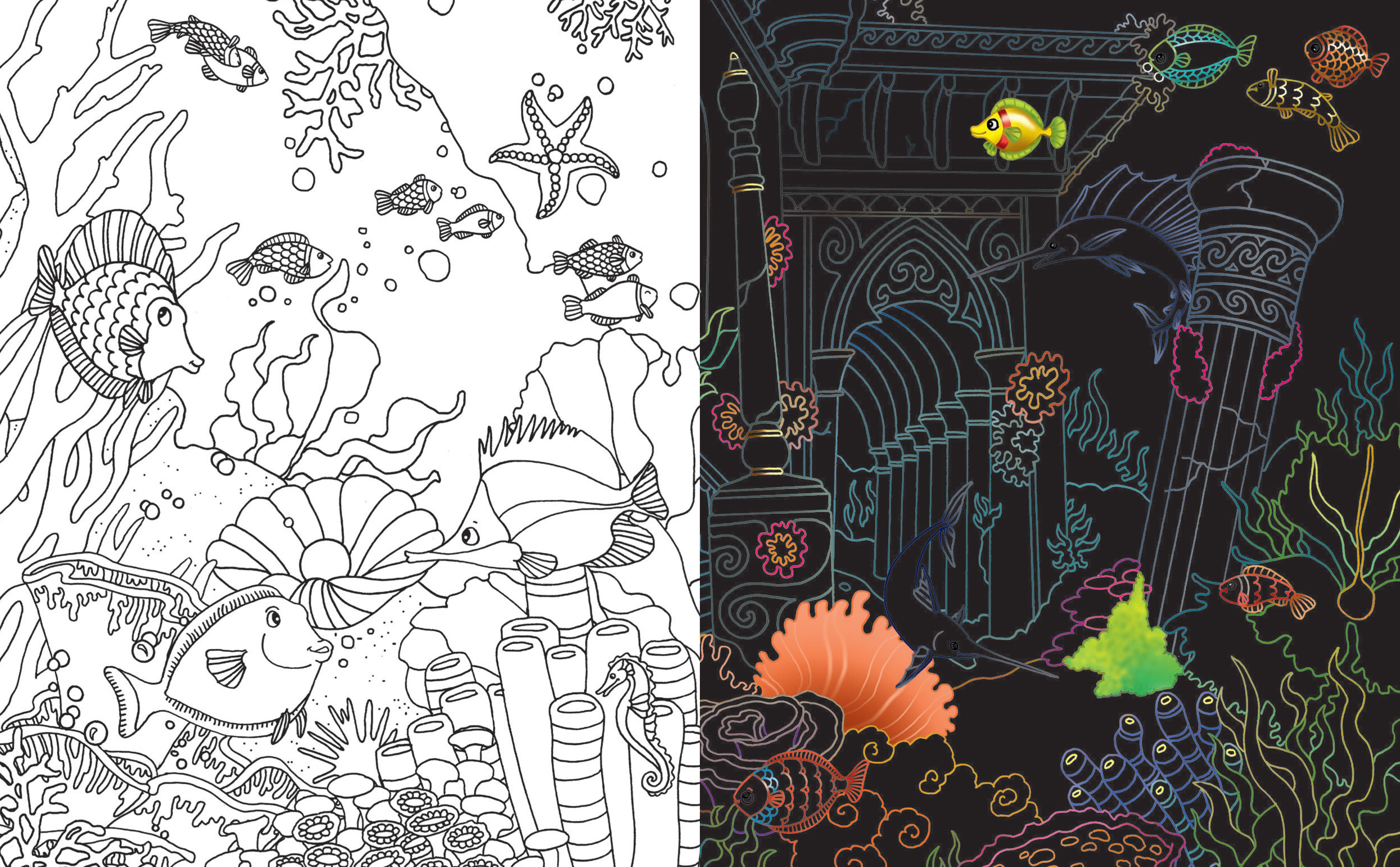 Tauche ein in die geheimnisvolle Unterwasserwelt • Alle Kratzbilder mit unterschiedlichen Farbeffekten • Extra: mit kreativen bastelideen für deine Kratzbilder • Jedes Kratzbild zum Heraustrennen und Verschenken • Mit Bambus-Stick • F...