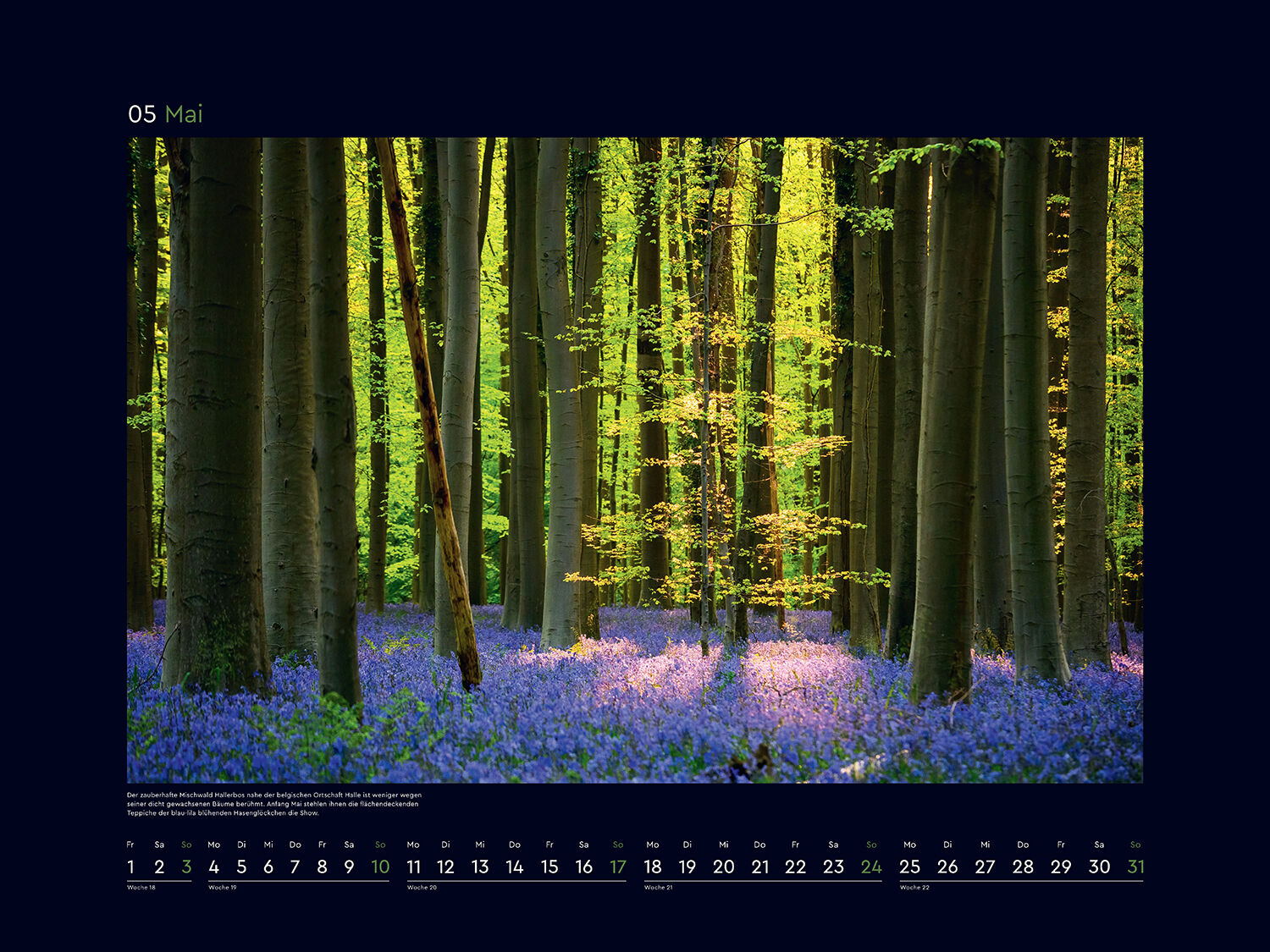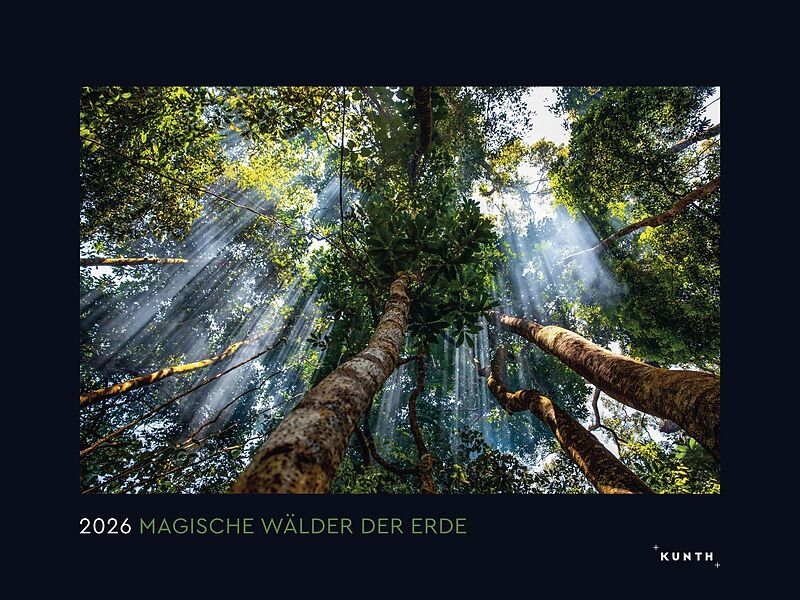 Mit zwölf herausragenden Fotografien schmückt dieser opulente, großformatige KUNTH Wandkalender Magische Wälder der Erde für 2026 in edlem Design jedes Zimmer egal ob im Büro, im Home Office oder in Wohnräumen. Wälder bieten nicht nur einen Lebensraum für zah...