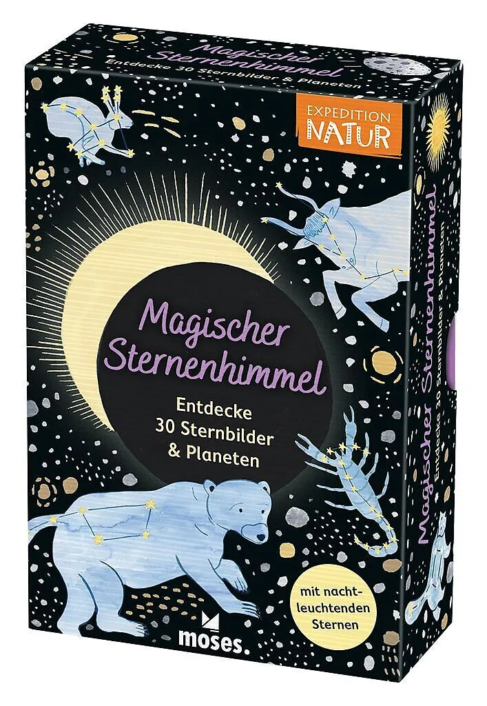 Dieses wunderschön illustrierte Kartenset ermöglicht es Kindern ab 5 Jahren 30 Sternbilder, Planeten und Himmelskörper am Himmel zu entdecken und zu bestimmen - und das ganz ohne Teleskop. Die 9 Sternbilder in dem Kartenset leuchten sogar im Dunkeln, wenn man ...