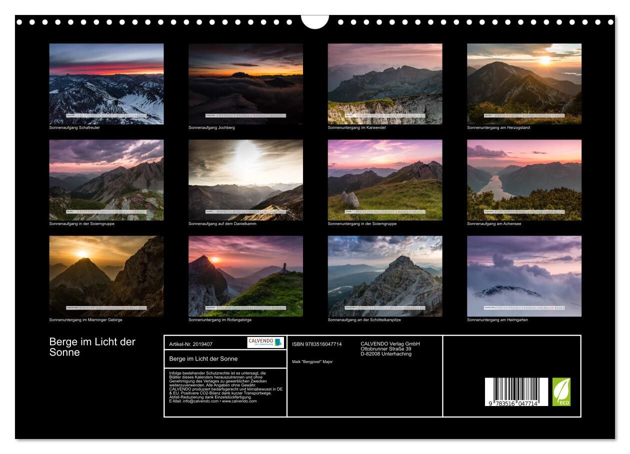 Berge im Licht der Sonne (Wandkalender 2026 DIN A3 quer), CALVENDO Monatskalender