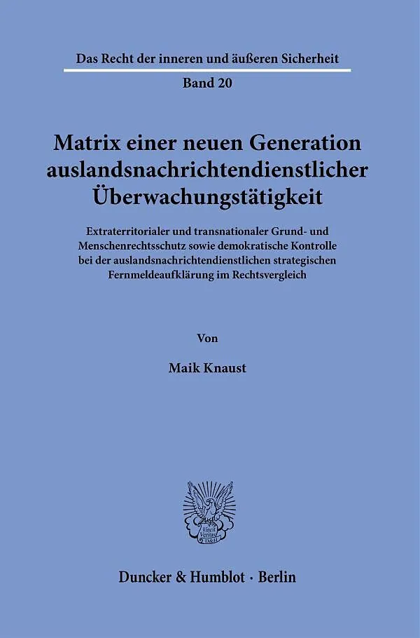 Die Arbeit untersucht die Regulierung der auslandsnachrichtendienstlichen strategischen Fernmeldeaufklärung und deren Kontrolle in Deutschland, Frankreich und den USA. Der Grund- und Menschenrechtsschutz insbesondere von Ausländern wird in den dortigen Überwac...