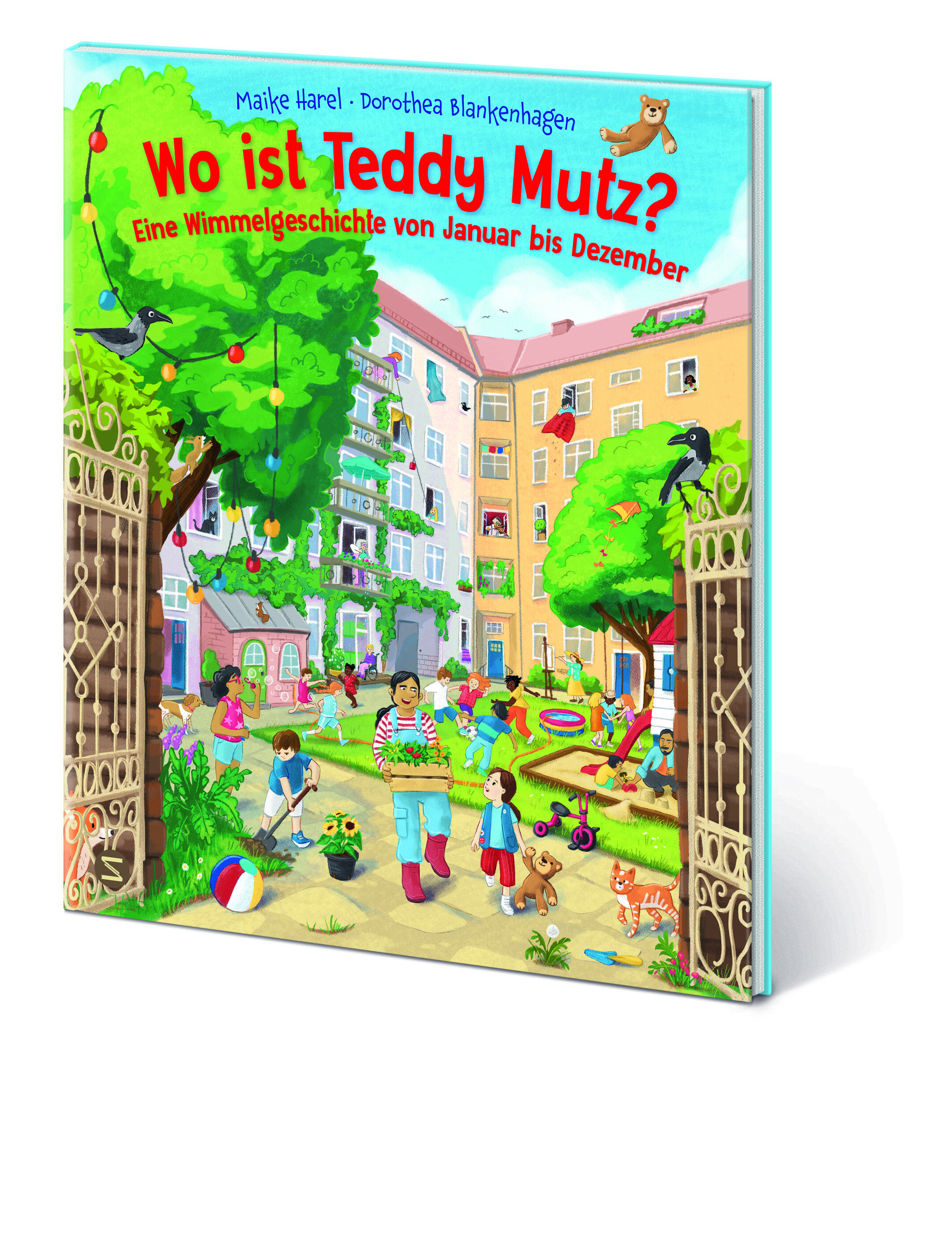 Teddy Mutz ist hier versteckt, wer ihn wohl zuerst entdeckt? Von Januar bis Dezember ist viel los in diesem Großstadthinterhof. Jung und Alt, Groß und Klein wohnen hier in einer bunten Hausgemeinschaft zusammen und feiern die Jahreszeiten und die kleinen Aben...
