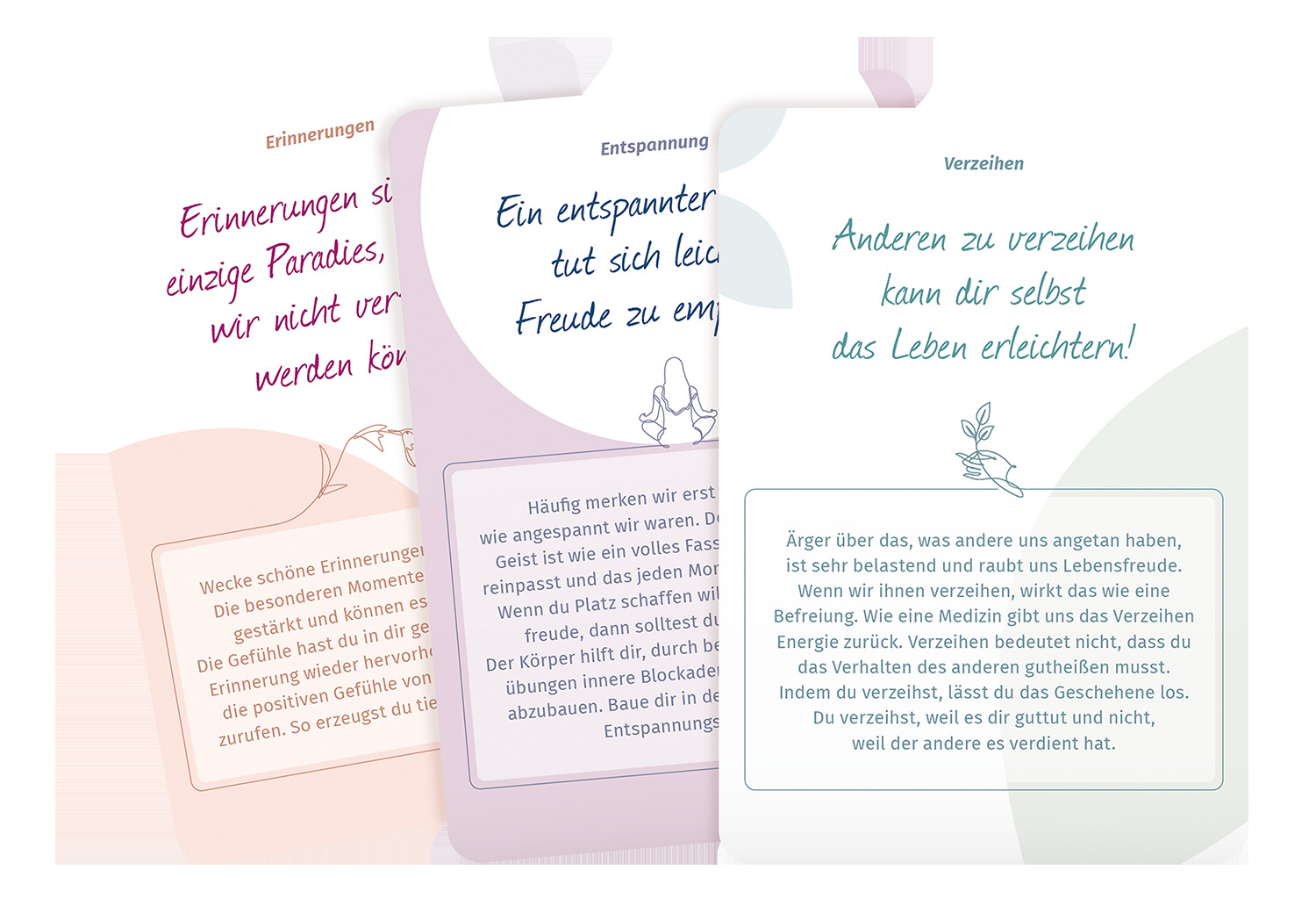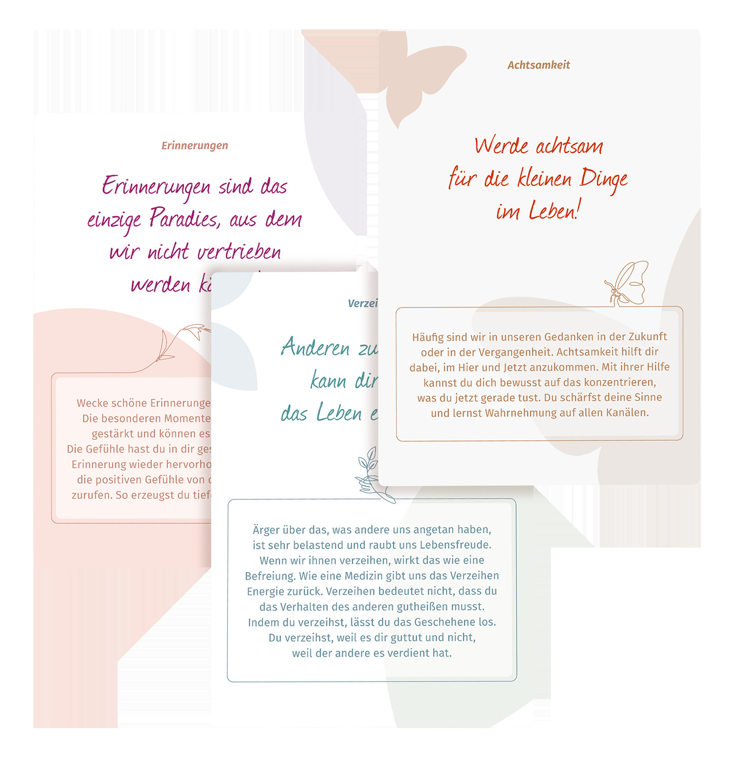 Wecke deine Lebensfreude! Gib jedem Tag die Chance, der schönste in deinem Leben zu sein! Diese 36 inspirierenden Karten begleiten dich durch deinen Alltag. Aktivierende Impulse schenken dir die nötige Energie, um Sorgen und Belastungen zu überwinden. Achtsamk...