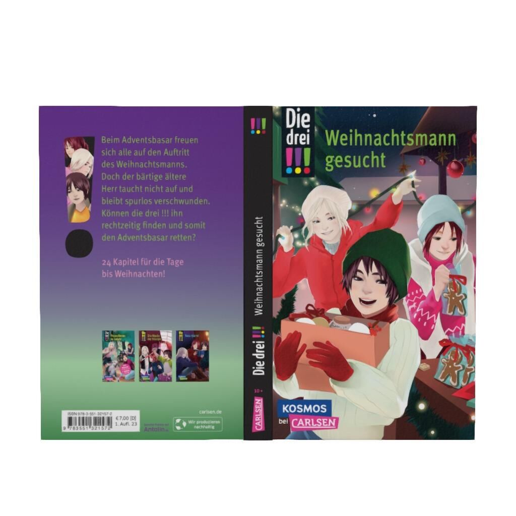 Beim Adventsbasar freuen sich alle auf den Auftritt des Weihnachtsmanns. Doch der nette ältere Herr taucht nicht auf und bleibt auch danach spurlos verschwunden. Können ihn die drei !!! rechtzeitig finden und somit den Adventsbasar retten? Autorentext Maja vo...