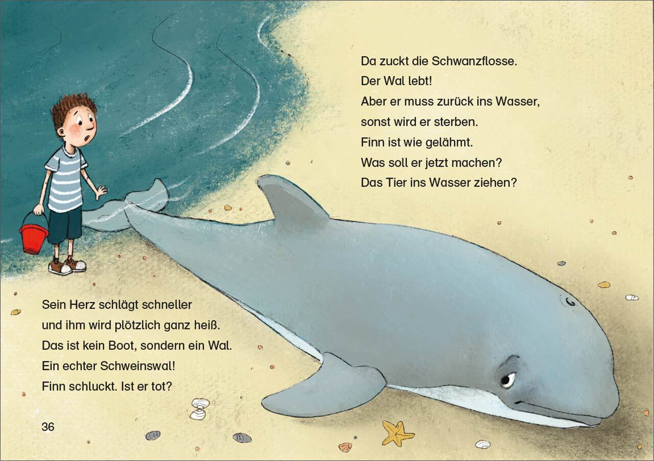 Ein gestrandeter Wal! Finn traut seinen Augen kaum, als er im Urlaub den Schweinswal am Strand entdeckt. Das Tier muss schnell zurück ins Meer jetzt zählt jede Minute! Mit den Kinderbüchern der Reihe Leselöwen für die 2. Klasse haben geübtere Erstleser großen ...