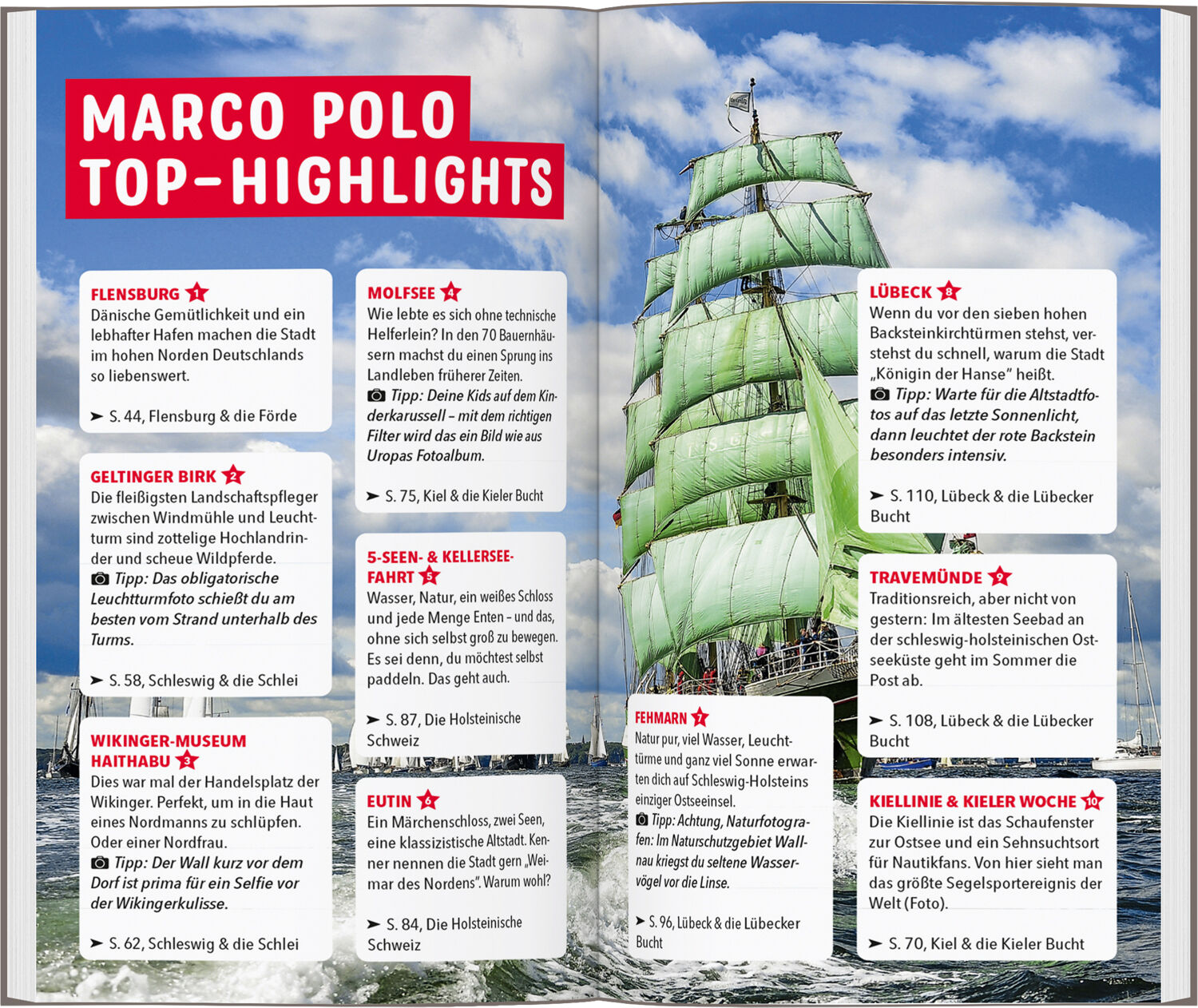 Urlaub am Meer mit dem MARCO POLO Reiseführer Ostseeküste Schleswig-Holstein Blauer Himmel über gelben Rapsfeldern, feinsandige Strände am windzerzausten Meer, kleine Fischerorte neben traditionsreichen Hafenstädten: Die schleswig-holsteinische Ostseeküste is...