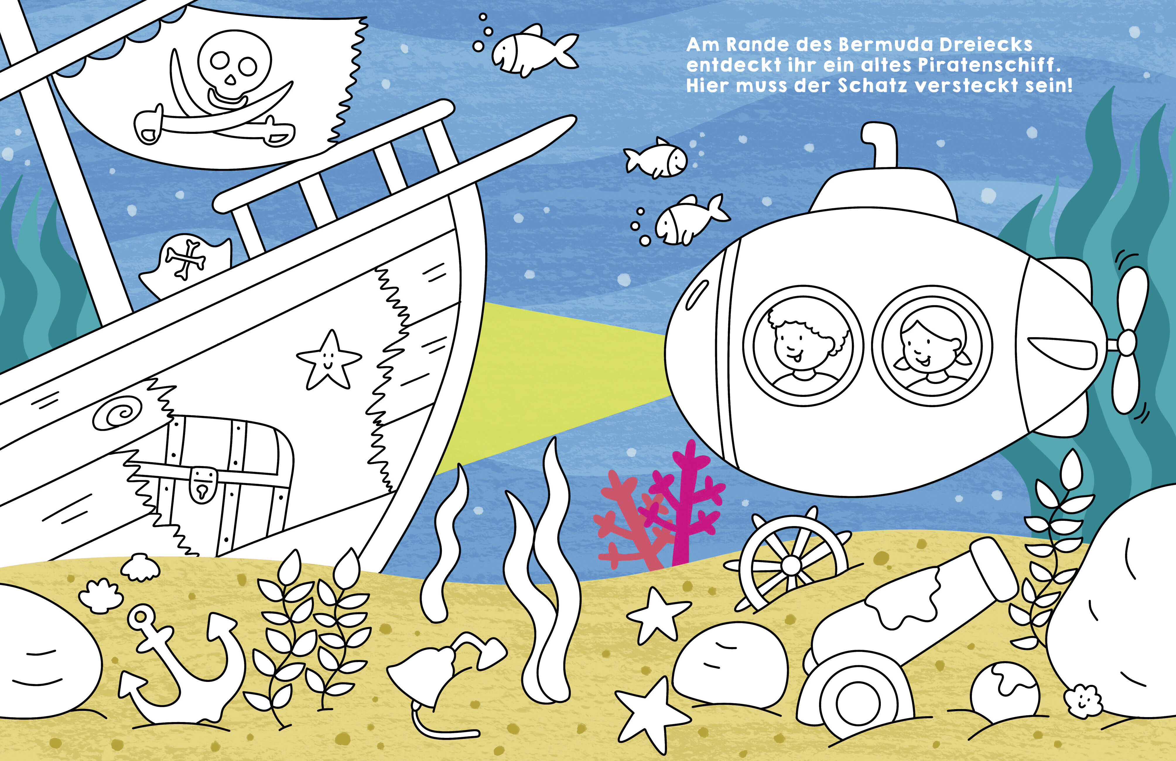 Kreatives Unterwasser-Ausmalbuch ab 4 Jahren zum Ausmalen, Weitermalen, Kritzeln und Sachensuchen Beim Schnorcheln finden die Kinder eine alte Schatzkarte, die zu einem lange vergessenen Piratenschatz führt. Sofort machen sie sich auf eine Entdeckungsreise du...