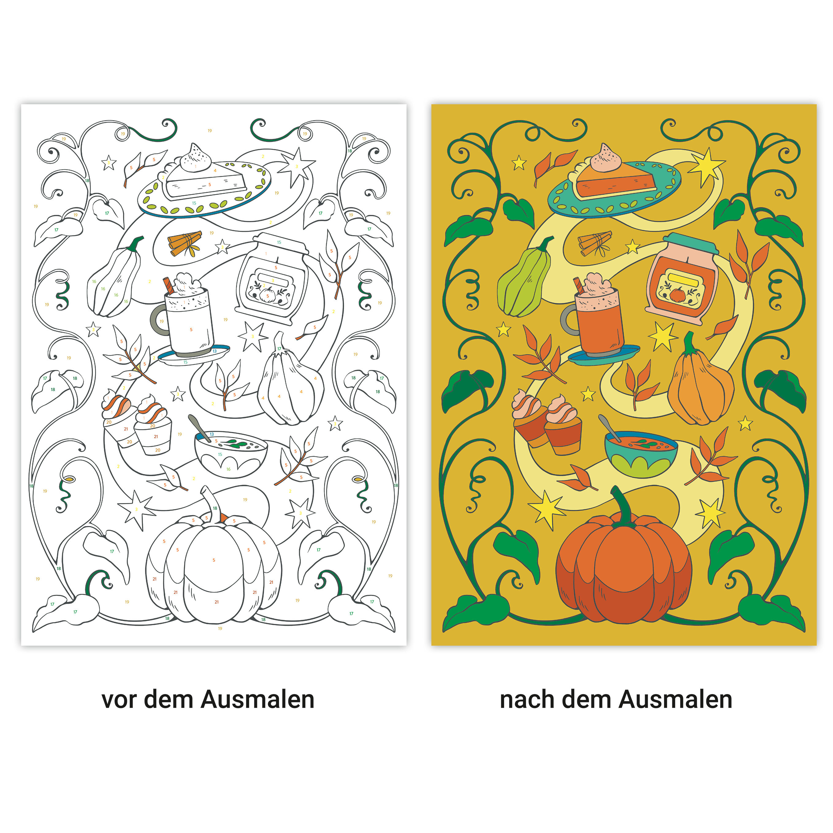 Dieses entspannende Malbuch enthält 32 nordische Wohlfühl-Motive Das Glück der kleinen Dinge in 32 Ausmalmotiven: gemütliches Beisammensein, kuschelige Lesestunden, magische Herbstspaziergänge, Zimtschnecken und Pumpkin Spice Latte. Die zarten Zahlen in den Au...