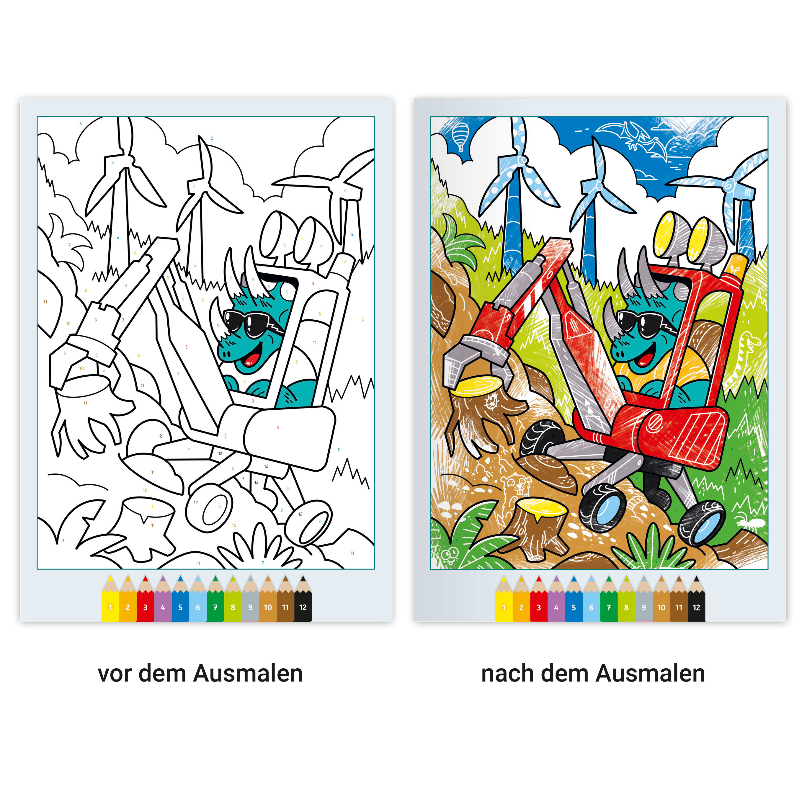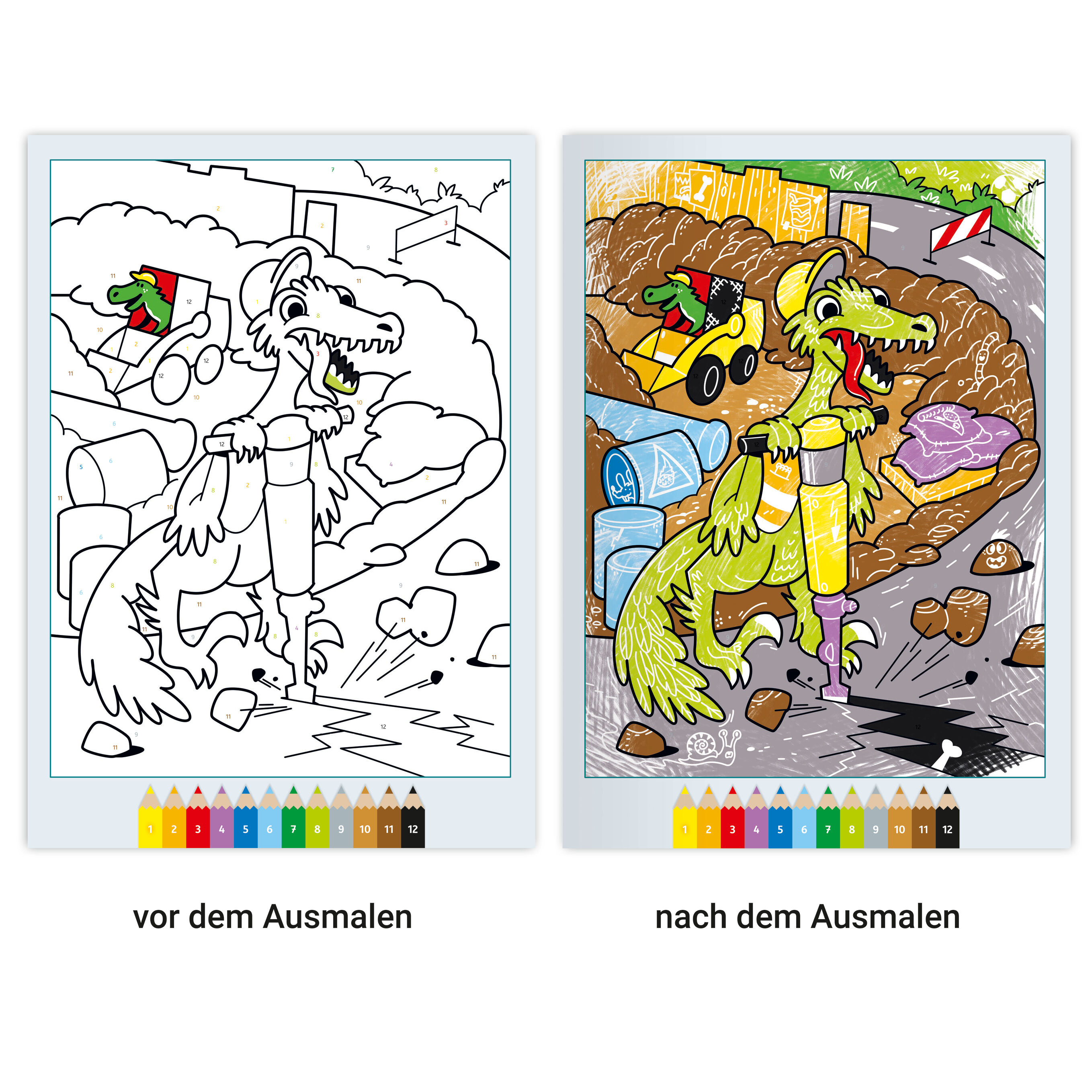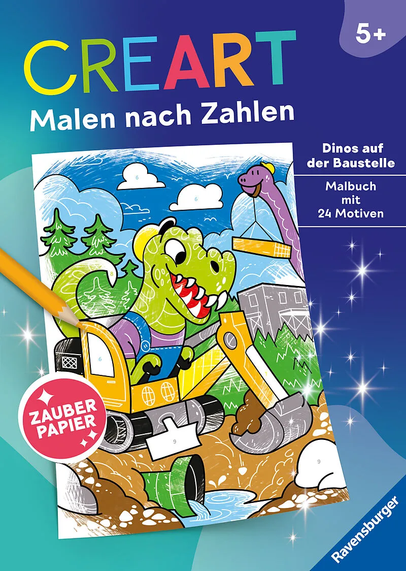 Malen nach Zahlen - jetzt auf magischem Papier! Dinosaurier, Baustellen und Fahrzeuge malen wie die Profis ist mit diesem Malbuch kein Problem. Ausmalen und Entdecken - dieses Malbuch mit 24 ansprechenden Motiven auf Zauberpapier kombiniert Malspaß und Überras...