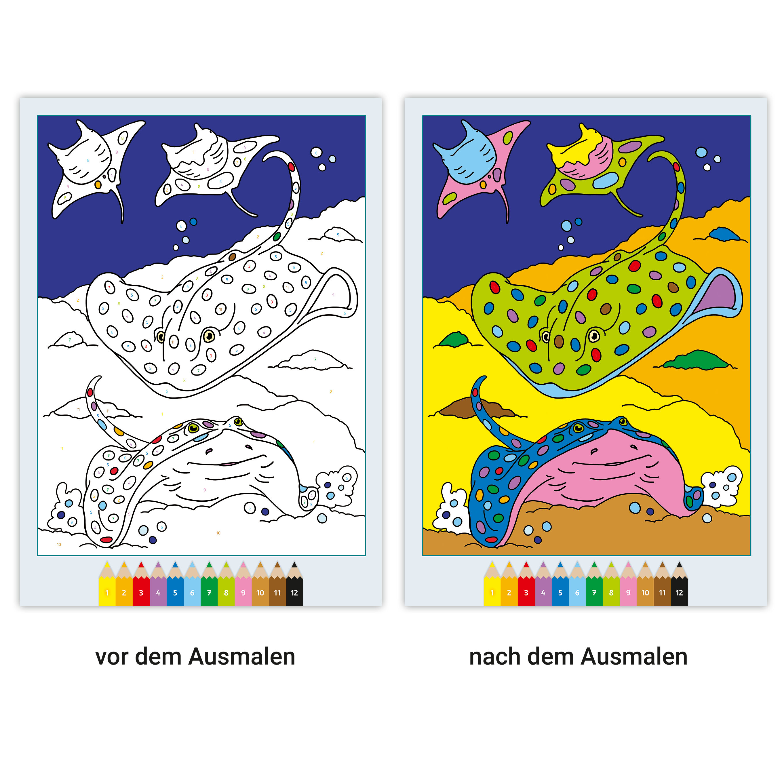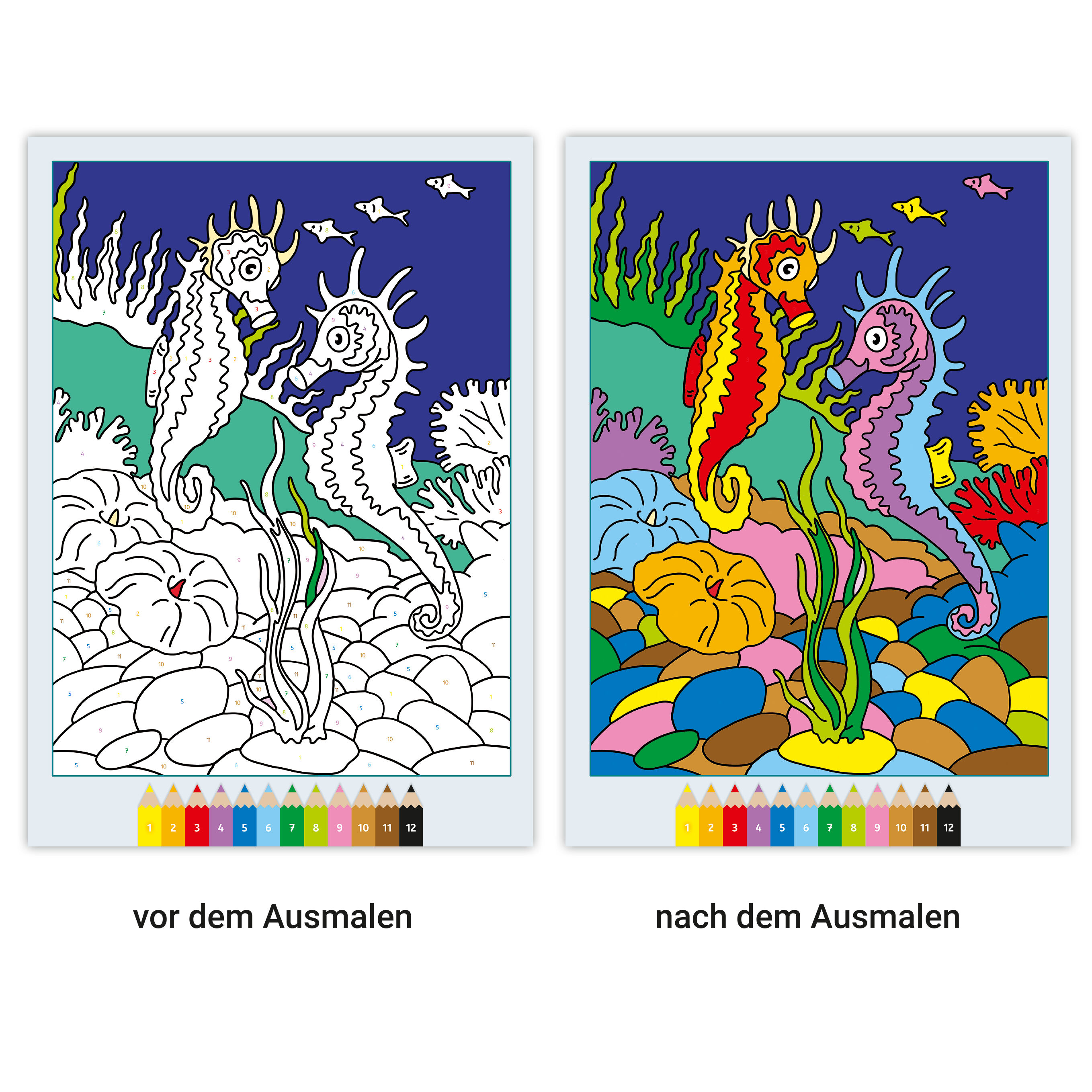 Malen wie die Profis mit diesem Malbuch kein Problem! Das Malbuch enthält viele tolle Ausmalmotive rund um das Thema Meer: bunte Seepferdchen, spielende Delfine, farbenprächtige Korallenriffe und vieles mehr. Die altersgerechten Motive und nummerierten Ausmalf...