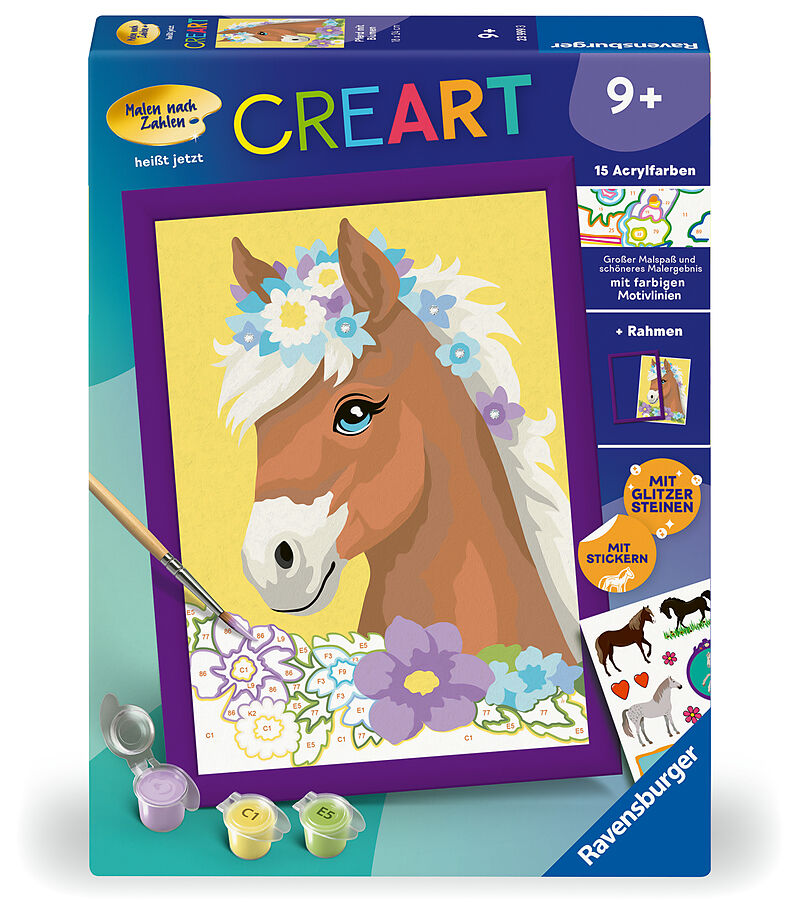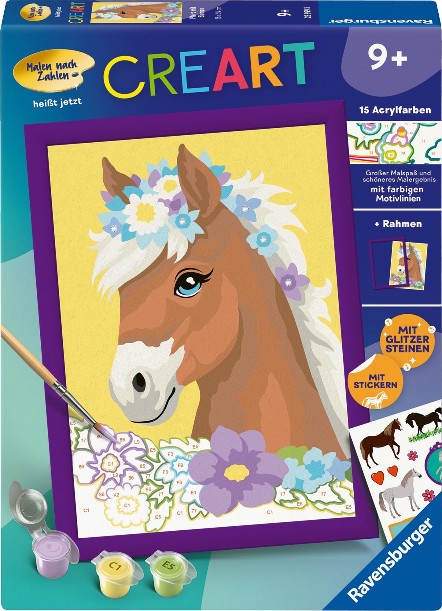 Ravensburger CreArt - Malen nach Zahlen 23999 - Pferd mit Blumen - ab 9 Jahren Farbige Motivlinien: Größerer Malspaß & ein schöneres Ergebnis! Dank der farbigen Motivlinien, können die Kinder das ganze Motiv Pferd mit Blumen und die Farben schneller erkenn...