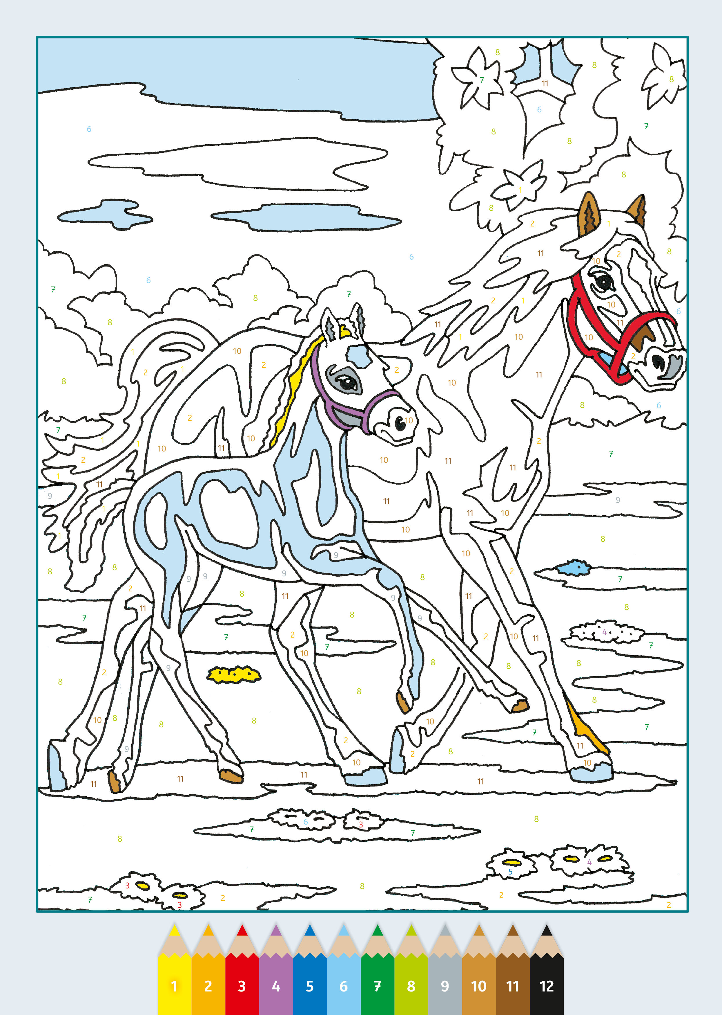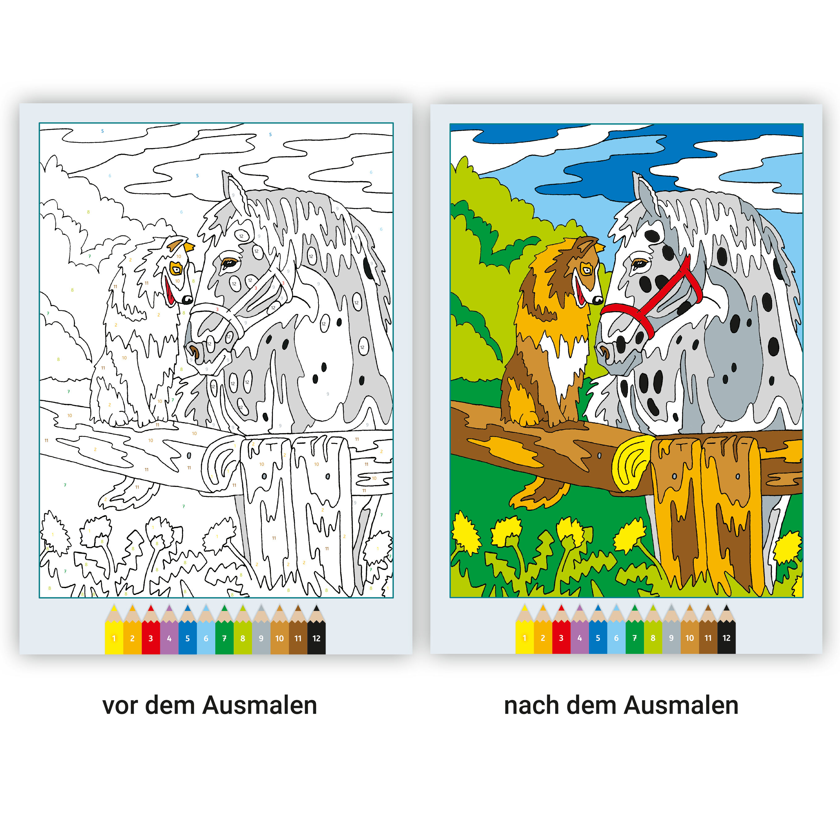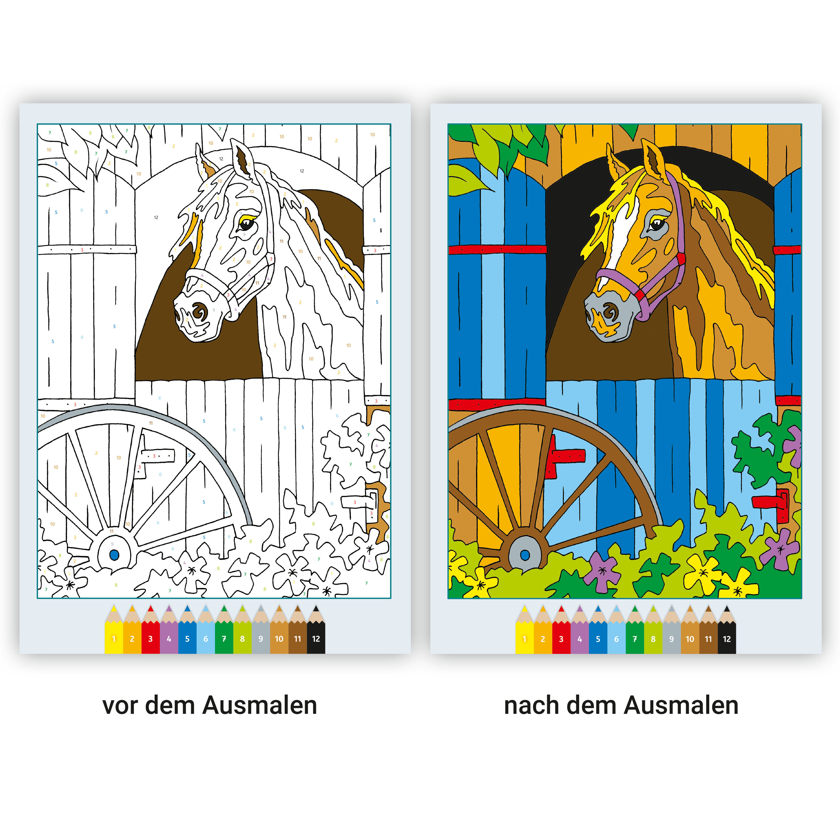 Pferde malen wie die Profis mit diesem Malbuch kein Problem! Dieses Malbuch enthält viele wunderschöne Ausmalmotive rund um das Thema Pferde: spielende Fohlen, stolze Araberhengste oder lustige Fjordpferde. Die altersgerechten Motive und nummerierten Ausmalfel...