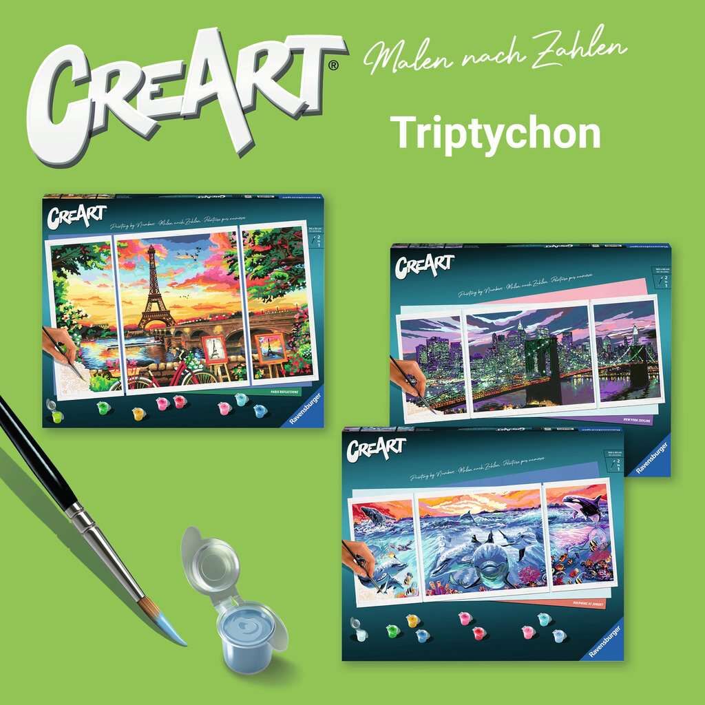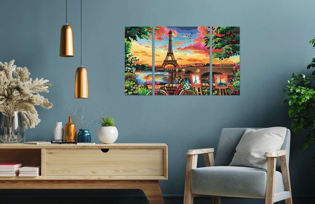 Spazieren Sie entlang der rechten Seineufer und verlieren Sie sich in diesem wunderschönen Triptychon Paris Reflections mit unserem CreArt Malen nach Zahlen Set! Atmen Sie tief durch und entfliehen Sie in die Stadt der Liebe, während Sie sich entspannen und si...