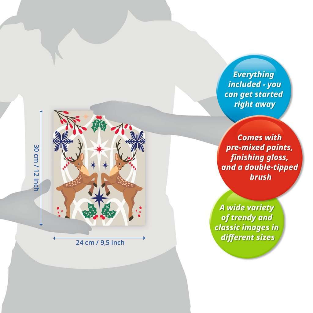 Coole Motive, leuchtende Farben und glänzender Lack für ein perfektes Finish. Das trendige Motiv Weihnachtlicher Hirsch sorgt für großartigen Malspaß für Erwachsene ab 12 Jahren. Die Motivlinien sind bereits aufgedruckt und nummeriert und werden mit den fertig...
