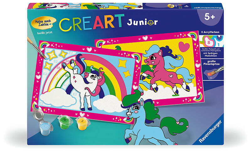 Farbige Motivlinien: Mehr Malspaß und ein schöneres Ergebnis! Dank der farbigen Motivlinien, die die Malbereiche umreißen, erkennen Kinder schneller das gesamte Motiv und die Farben. Das farbenfrohe Motiv Zauberponys mit Regenbogen ist eine tolle Geschenkidee ...