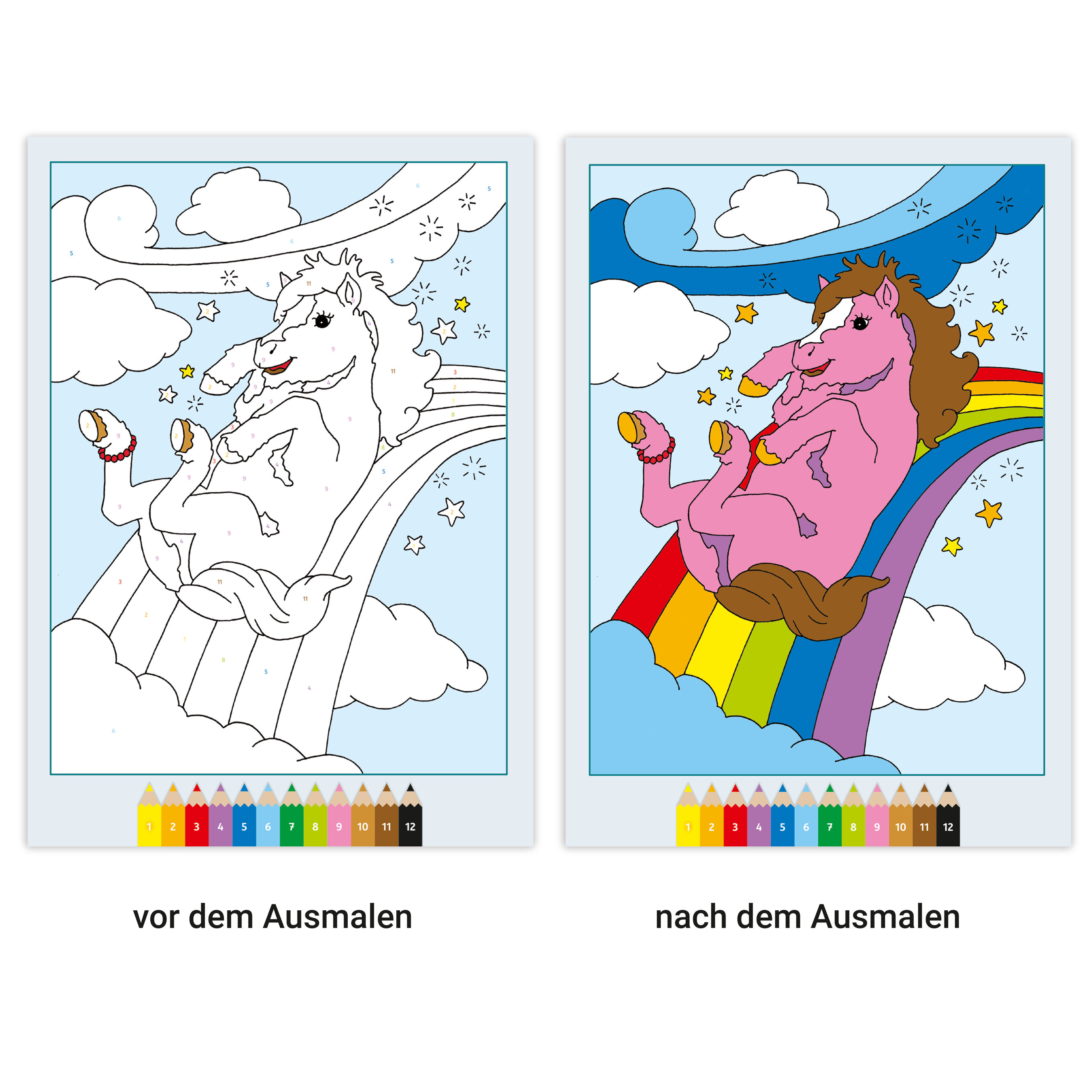 Zauberhafte Ponys malen wie die Profis mit diesem Malbuch kein Problem! Das Malbuch enthält viele magische Ausmalmotive rund um das Thema Zauberponys: beim Spielen, sich Verkleiden und Träumen im Mondschein. Die altersgerechten Motive und nummerierten Ausmalfe...